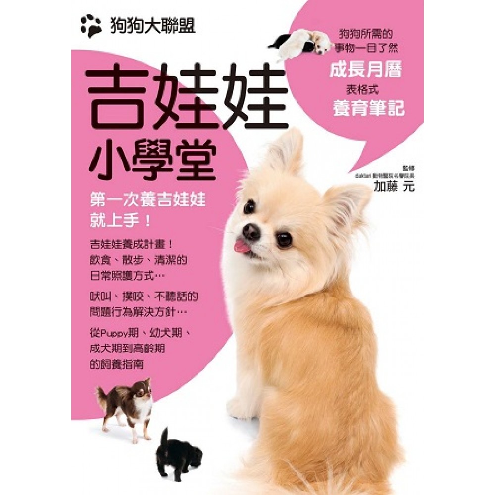 .前言 .吉娃娃是什麼樣的狗狗? .吉娃娃的毛質與毛色 .讓您一目了然的成長月曆 .新生期 .幼犬期 .成犬期 .中高齡期 Part1 與愛犬一起生活的事前準備&基礎教育 .與吉娃娃一起生活的守則 .迎接幼犬的事前準備 .準備狗狗的房間 .迎接幼犬當天流程 .如何與幼犬相處 .餵食幼犬 .訓練狗狗上廁所 .讓狗狗看家 .跟幼犬一起開心玩耍 Part2 社會化&幼犬訓練方法 .理解狗狗的本能,好好教育牠 .幼犬的社會化過程就是教育的基礎 .開始教育新生幼犬吧! .從眼神接觸開始 .Lesson1「坐下」 .Lesson2「趴下」 .Lesson3「過來」 .Lesson4「等等」 .吃飯時的「等等」指令 .「等等」指令應用篇 .Lesson5訓練狗狗進室內籠 .Lesson6「進去」(外出籠等空間) .《COLUMN》訓練成效不佳時的確認事項! Part3 與愛犬一起外出 .外出守則與事前準備 .訓練狗狗「進包包」 .訓練狗狗「趴墊子」 .開始出門散步 .散步時使用的「跟上來」指令 .兩隻狗狗相遇時 .教狗狗打招呼 .跟愛犬一起出門! .《COLUMN》乘車外出時的注意事項 Part4 日常保養 .吉娃娃需要的各項保養 .梳毛 .洗澡&吹乾 .身體各部位保養 .修剪雜毛 .《COLUMN》讓狗狗聰明看家的小秘訣 Part5 將愛犬打扮得亮麗又時髦! .讓狗狗穿上可愛的衣服 .項圈 .簡約風 .休閒風 .華麗風&可愛風 .吉娃娃的冬裝 Part6 飲食、健康管理&易罹患的疾病 【飲食】 .吉娃娃的飲食小常識 .飼料挑選方法 .餵食的次數與分量 【健康】 .平時的健康檢查 .緊急時的處理方式 .前往動物醫院就醫時的注意事項 【疫苗與疾病】 .接種疫苗,預防可怕的傳染病 .傳染病的特徵 .疾病症狀與治療方法 .大腦、神經疾病 .循環系統疾病 .呼吸系統疾病 .泌尿系統、肛門疾病 .生殖器官疾病 .骨骼、關節疾病 .皮膚疾病 .眼睛疾病 .耳朵疾病 .牙齒、口腔內疾病 .內分泌(荷爾蒙)疾病 .中高齡易患的疾病 【結婚與結紮、中高齡期照顧方式】 .吉娃娃的結婚與生產 .從懷孕到生產 .中高齡的吉娃娃照顧法 Part7 預防&解決愛犬令人困擾的行為 .了解「惱人行為」的背景 .惱人行為1 咬飼主 .惱人行為2 吠叫 .惱人行為3 撲人 .惱人行為4 對人做出騎乘姿勢 .惱人行為5 拉牽繩 .惱人行為6 叫不來 .惱人行為7 吃飯時飼主去碰飼料碗會低吼 .惱人行為8 無法與其他狗狗和平相處 .惱人行為9 無法在室內排泄 .惱人行為10 會吃自己的便便 .惱人行為11 在廁所以外的地方排泄 .惱人行為12 會把廁墊揉成一團 .表格式 愛犬照顧筆記 .daktari動物醫院