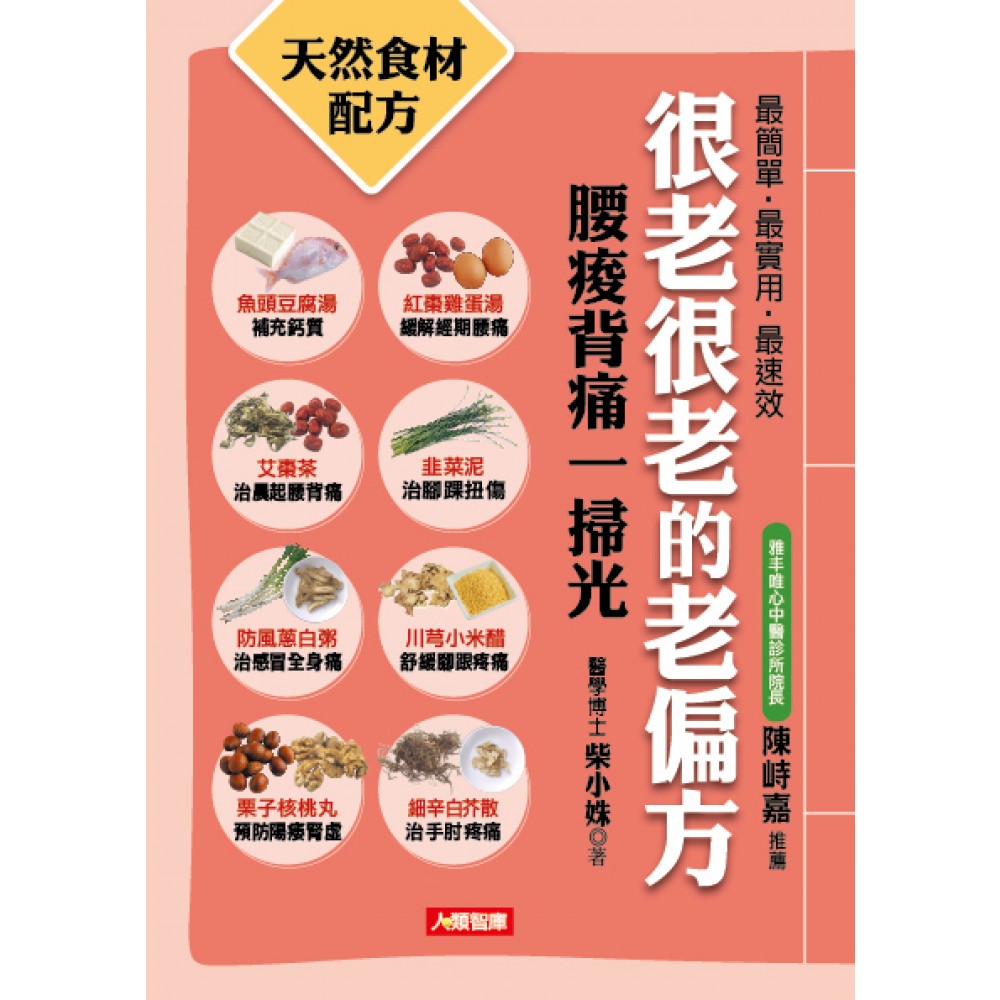 目錄 【推薦序】 【經典老偏方‧家庭療法速查表】 第1章 上班族老偏方 腰痠背痛一掃光 告別這裡痠那裡痛,工作更順利上手 1 肩痛 學學梳頭、洗臉,肩頸好輕鬆 【柴醫師看診實例】肩痛持續1週,難道罹患五十肩? 2 背痛 抱膝躺一躺,疼痛不上身 【柴醫師看診實例】背痛難耐,原來是背包惹的禍? 3 久坐腰痠背痛 伸懶腰、靠牆、呼氣好得快 【柴醫師看診實例】運動健身,腰部痠痛卻加劇? 4 晨起腰痠背痛 按摩、喝茶、運動3招抗寒 【柴醫師看診實例】早起腰痛,能服用補腎成藥嗎? 5 渾身疲勞無力 喝「生地山藥枸杞粥」重現活力 【柴醫師看診實例】檢查不出毛病,卻整天無精打采? 6 落枕 按壓手背奇穴可治癒 【柴醫師看診實例】經常落枕,依賴按摩舒緩不適 7 冷氣頸 熱敷陳醋、換藥枕見效快 【柴醫師看診實例】辦公室冷氣太強,脖子先受害 8 腰椎間盤突出 書本墊腳站一站 【柴醫師看診實例】腰椎間盤突出是老人的專利嗎? 9 滑鼠手 搖搖扇子,「搖」走刺麻痛 【柴醫師看診實例】手指、手腕疼痛,無法正常工作 10 屁股久坐疼痛 按摩、燈照、抬腿三效合一 【柴醫師看診實例】一覺醒來,臀部刺痛不能行走 11 慢性腰痛行走難 試試杜仲豬腰煲靚湯 【柴醫師看診實例】一加班,腰部就隱隱作痛 12 濕熱腰臀痛 牛膝絲瓜湯袪濕止痛 【柴醫師看診實例】腰背臀不舒服,半夜常痛醒 第2章 日常保健老偏方 治筋骨痛有妙招 生活中若遇到大小毛病,求醫不如求己 1 失眠頭頸痛 換個油柑葉枕,一覺到天亮 【柴醫師生活實例】自製油柑葉枕,專治失眠、頭痛 2 頸性眩暈 按壓痛點暈眩不再 【柴醫師看診實例】連續加班,一轉頭天旋地轉 3 輕度閃到腰 「背靠背」運動療法有一套 【柴醫師看診實例】搬東西閃到腰,需要掛急診? 4 運動後肌肉痠痛 喝醋終結疲勞、痠痛 【柴醫師看診實例】「獨門祕方」治痠痛,參賽不用愁 5 感冒全身痛 喝防風蔥白粥,感冒快快好 【柴醫師生活實例】按摩可治好風寒型感冒嗎? 6 兒童生長痛 多吃蹄筋就對了 【柴醫師看診實例】12歲小男孩竟出現腿痛、膝蓋痛? 7 骨折腫痛 內服外用合歡皮好得快 【柴醫師看診實例】「合歡皮消腫方」治癒骨折 8 骨傷 黃瓜籽以酒送服治骨傷 【柴醫師生活實例】黃瓜籽對人畜骨折、骨傷有奇效 9 手肘痛 外敷細辛白芥散,輕鬆揮別網球肘 【柴醫師看診實例】當家庭主婦才5年,就罹患網球肘 10 尾骨痛 坐「O形墊」、熱敷,疼痛不再 【柴醫師看診實例】傷患入廁時滑倒,尾椎骨受傷 11 腿腳抽筋 夏天艾葉冬天香蕉,不再抽筋 【柴醫師看診實例】試過各種方法,小腿依舊抽筋? 12 腳踝扭挫傷 韭菜泥消腫化瘀 【柴醫師看診實例】打籃球扭傷腳,敷韭菜泥就能好? 13 腳底痛 做操+艾灸+踏蹬3招緩解疼痛 【柴醫師看診實例】經常穿涼鞋,也會造成腳底痛? 第3章 孕產期老偏方 不痠不痛當媽媽 趕走所有痠痛不適,平安度過孕產期 1 懷孕腰痠背痛 輕柔按摩脊椎兩側 2 腰痛抽筋 喝魚頭豆腐湯補鈣 【柴醫師生活實例】腰痠背痛,可能是缺鈣引起? 3 孕期腰痠便祕 牛蒡芝麻炒肉絲有奇效 【柴醫師看診實例】孕婦腰痠背痛又便祕怎麼辦? 4 孕期水腫渾身痛 紅豆山藥湯消腫止痛 【柴醫師看診實例】補品吃太多,孕婦全身水腫? 5 產後腰痛 多吃肉桂栗子山藥粥 【柴醫師看診實例】月子期間照顧寶寶,媽媽產後腰痛 6 產後腳跟痛 喝湯+伸展+足浴三管齊下 【柴醫師看診實例】淫羊藿羊肉湯可緩解腳跟痛 第4章 生理期老偏方 調理經期增健康 經期輕鬆無負擔,養好體質關鍵期 1 經期腰痠痛 熱敷命門穴可緩解不適 【柴醫師看診實例】「好朋友」一報到,嚴重腰痠痛 2 腎虛經期腰痛 首烏燉黑豆告別腰痛 【柴醫師看診實例】生理期常會腰痠背痛 3 經期腰刺痛 服用丹參酒、益母草元胡蛋 【柴醫師看診實例】大一女生每月都會腰部刺痛 4 經期腰部冷痛 喝紅棗雞蛋湯、墨魚酒 【柴醫師生活實例】天冷陰雨時,許多女性頻喊腰痛 5 骨盆腔炎經期腰痛 3個偏方全搞定 【柴醫師看診實例】看遍各大醫院,腰痛依舊 第5章 男性腰痛老偏方 腰背結實全靠腎 腎是「先天之本」,腎好精力自然旺盛 1 房事後腰痠背痛 吃「熟地山茱萸燉鴨肉」 【柴醫師看診實例】房事後腰痠背痛,吃補品也沒改善 2 更年期腰痠乏力 蟲草蝦仁湯有特效 【柴醫師看診實例】晚上睡不好、早上睡不醒怎麼辦? 3 腎虛陽痿腰痛 栗子核桃丸功效佳 【柴醫師看診實例】看遍各大門診,症狀反而更嚴重? 4 慢性腎炎腰痠痛 「荸薺紅豆燉豬肚」可緩解 【柴醫師看診實例】長期腰痠背痛,竟罹患慢性腎小球腎炎 5 腎結石腰痛 龍鬚茅根湯根除病因 【柴醫師看診實例】龍鬚茅根湯可治好膀胱結石? 6 尿道結石腰腹絞痛 金錢草湯可緩解 【柴醫師生活實例】一到冬天,腰腹部就劇烈疼痛 7 泌尿道感染腰痛 西瓜皮+冬瓜皮效果佳 【柴醫師看診實例】腰痛為什麼要做尿液常規檢查? 8 攝護腺炎腰痠痛喝雙花甘草飲、蘋果汁 【柴醫師看診實例】罹患攝護腺炎,常吃西藥副作用大? 9 攝護腺肥大 油菜花粉是救星 【柴醫師看診實例】罹患攝護腺肥大引發腰痛 第6章 中老年老偏方 身強體健活天年 腰腿靈活精神好,做個快樂銀髮族 1 五十肩 丟沙包丟掉惱人疼痛 【柴醫師看診實例】治療方式相同,復原情況為何差很大? 2 骨質疏鬆腰背痛 牛膝泡茶療效好 【柴醫師看診實例】腰背經常疼痛,站立時更
