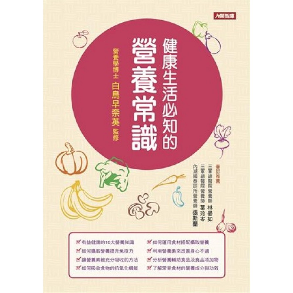 最新版的知識最安心! 本書5大特色 特色1 用淺顯易懂的插畫和圖解來解說營養常識! 詳細解說應該知道的營養知識,有許多照片、插畫和圖解來輔助說明,讓你能輕鬆理解。 特色2 詳細介紹「最有效」的營養攝取方法! 介紹各種營養素的種類和功效,也會讓你知道哪些營養素一起搭配攝取,更能提升其功效和吸收率,及烹調上「聰明」的營養攝取方法。 特色3 解說正確「飲食搭配」讓你提升健康效果! 除了介紹各種食材的健康效果,還有很多「飲食搭配」的訣竅,讓你知道哪些食材搭配一起吃能讓彼此的效用倍增,更加提高健康效果。 特色4 攝取營養來改善慢性病及美化肌膚! 從營養學的層面,針對貧血、高血壓、肥胖等生活習慣病,提供預防和改善的對策。也提供改善肌膚乾燥的困擾及有效凍齡的有用資訊。 特色5 解答你缺乏的營養常識所造成的「不安疑問」! 解說關於健康食品、食物過敏或食品添加物等,這些你經常聽到、關於營養及健康的事,本書能清楚解答你所不了解的疑問。 對生活非常有用! 全新的營養學 讓你吃得美味 身體變健康 對生活非常有用的營養學 能讓你身體更健康!更美麗! ?有益健康的10大營養知識 ?如何攝取營養提升免疫力 ?讓營養素被充分吸收的方法 ?如何吸收食物的抗氧化機能 ?如何運用食材搭配攝取營養 ?利用營養素來改善身心不適 ?分析營養輔助食品及食品添加物 ?了解常見食材的營養成分與功效 三軍總醫院營養師 林晏如 三軍總醫院營養師 葉玲岑 內湖國泰診所營養師 張斯蘭 審訂推薦 前言 人沒有食物就無法存活下去。不僅是健康,食物的影響還遍及頭腦、性格以及容貌。也就是說,各位的身體是由各位所攝取的食物形成,可說是你們自己創造出來的「作品」。 想創造出好的「作品」,是有規則的。基本規則就是「三餐正常、攝取均衡的飲食」。最近,雖然有人提出一天一餐或一天兩餐為佳的觀念,但是,例如和酵素的功用關係匪淺的水溶性維生素,平均每2~3小時就會排出體外,因此必須勤於補充。從這點來看的話,用餐最好還是以三餐為宜。 還有,所謂均衡的飲食,是指恰如其分地攝取醣類、脂肪、蛋白質、維生素和礦物質這5大營養素以及膳食纖維,不要過與不及。 在日本放眼看去,充斥著來自世界各地的食材,其中也不乏許多含有添加物或農藥、基因改造食品等令人有疑慮的食材。因此,我們必須學會正確的知識,自己選擇對身體有益的食材。 在本書中,將以淺顯易懂的方式解說對家庭有助益的營養知識。並且,進一步提供能提高營養素效能的聰明攝取方法,還會建議「食材搭配」的要訣,做為有效率攝取食材的方法。請務必多多參考,祈願大家都能努力創作出更棒的「作品」。