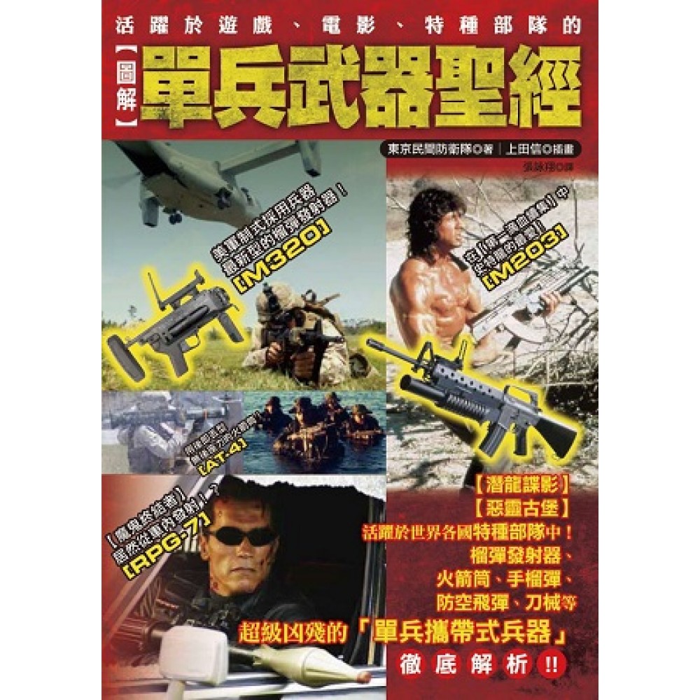 老子們的武器可不只有「槍」而已! 能夠一擊撂倒特種部隊、戰車、飛機的武器! 威力強大且兇惡的「單兵攜帶式武器」將大鬧世界!!! 碰到用槍打不倒的戰車、戰鬥直升機等強敵,或是遭遇生物武器、化學武器這種「看不見的威脅」…… 為了面對這些兇惡的敵人,就要拿出比槍械還要凶惡的「個人攜帶式武器」! 本書囊括了榴彈發射器、火箭筒、手榴彈等代表性武器,以及刀械、防彈背心, 還有在電影【危機倒數】中登場的防爆衣等等,搭配插圖以淺顯易懂的方式解說。 要了解既兇惡又強大的「單兵武器」世界,本書可說是最棒的「聖經」!