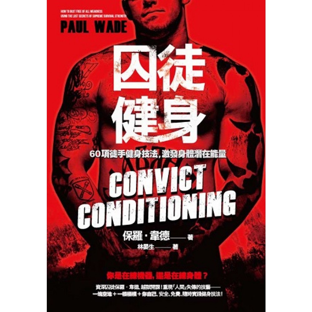 翻開本書,你將發現自己就是教練、身體就是器材、 整個城市,都是你的健身房! 資深囚徒保羅‧韋德,越獄開課! 重現「人間」失傳的技藝— 想要身強體壯,你根本不需要啞鈴槓片、彈力拉繩等酷炫的器材, 或其他健身產業、置入性行銷廣告試圖透過洗腦讓你相信非用不可的廢物…… 你需要的是正確的方法—訓練之道。 —保羅‧韋德 【本書特色】 ◎PTT Busclebeach版盛讚,號稱健身界「魔教秘笈」。 ◎伏地挺身、深蹲、引體向上、抬腿、下腰、倒立伏地挺身—六招十式,漸進訓練。 ◎一塊空地、一根橫槓+你自己,安全、免費、隨時實踐健身技法! ◎重現被健身房、康健雜誌排除,人間失傳的「徒手健身體操」。 ◎致力於提倡安全訓練技巧的重要性。 這是個健身房林立的城市—幾乎走到哪,都看得到生氣勃勃的筋肉魔人,他們擁有40公分以上的粗壯手臂、荊棘般的青筋,無袖背心或T恤套在身上,就像服貼的透明保鮮膜,一出手就能推動沉重的槓鈴,磚塊般的腹肌、馬甲線隨便都能夾死一堆蒼蠅,然而……這就稱得上是「健壯」嗎? 這些讓男人嫉妒,女人尖叫的猛男中,有多少人具備實用的運動肌力?能臥倒做出單手伏地挺身?後仰觸地?只靠膝蓋和臀部的力量,單腿深蹲起立?利用單槓做出完美無瑕的單手引體向上?—除了操弄健身房裡花稍、平穩的器材,他們還有多少力氣能夠運用在現實生活中? 撒了大把金錢和時間上健身房,「到底是在練機器,還是在練身體?」 或許機械能練出粗壯的四肢,卻無法強化肌腱和關節。不信?親自到熱門的健身中心走走,你會看到很多人關節著裝護具,背纏高科技護套,手肘環繞固定束帶,更衣室裡更是鎮痛擦劑味撲鼻—你問「那該怎麼辦?」關鍵是—憑藉「自己」喚醒身體潛藏的力量,全面性地強化肌肉與關節。 本書作者曾經是名囚犯,在資源匱乏的情景下,以「漸進式徒手體操」練就一身足以在險惡監獄存活的實用本領,只要「運用自身的體重+漸進式訓練」,無論單手伏地挺身、單腿深蹲、單手引體向上、吊掛抬腿、鐵板橋,甚至是單手倒立伏地挺身都只是雕蟲小技。 翻開本書,你會發現健康雜誌和健身房裡告訴你的「需要」多麼虛妄,因為只要「你自己+一小塊空間」,頂多再加一根能夠懸掛的橫槓,就能開發極致的生存力量! 拋下啞鈴與槓片,退掉健身房會員證,你將發現真正的強大! ★【名人推薦】 保羅‧韋德在《囚徒健身》一書中介紹幾個關鍵的自體重量訓練方式,打造合理又能有效讓狗熊變英雄的進程,並提出一套完整的訓練原理。這本書買就對了。 ──帕維爾‧梭特索林(Pavel Tsatsouline),前蘇聯特種部隊體能訓練教官,著有《赤手鬥士》(The Naked Warrior)。 《囚徒健身》一書向自體重量訓練致敬,雖是新瓶裝舊酒,但合我胃口。本書內容漸進、精準、清晰,實為挽救日漸薄弱的基礎人體知識所必須。 ──葛雷‧庫克(Gray Cook),物理治療碩士(MSPT),骨科臨床專家(OCS),肌力與體能訓練專家(CSCS),功能性動作系統(Functional Movement Systems)創辦人,著有《運動員的身體平衡》(Body of Balance)。 《囚徒健身》一書文字有趣,內容豐富,提供大量至理名言與精闢見解,只要依循操練,必可打造出一身精壯實用的肌肉。前受刑人保羅‧韋德的文筆就像一柄銳不可擋的利刃,戳破健身雜誌的浮誇謬論,直指核心真相:你不需要用酷炫器材、膚色噴霧劑或精心撕裂的T恤來彰顯強而有力的肌肉。你所需要的就是你自己的身體,幾項簡單的運動和一個計劃。你出身體,剩下的部分就由《囚徒健身》透過簡單易讀的說明告訴你該做什麼以及如何操作。運動書籍著作等身的不才在下,特此推薦本書。 ──羅倫‧克里斯汀生(Loren Christensen),著有《獨立訓練》(Solo Traning)、《勇者之軀》(The Fighter’s Body)。 套句經典的政治標語:「笨蛋,問題是漸進。」韋德教練在《囚徒健身》中羅列一系列的漸進課程,帶你逐步精熟六大徒手運動,跟著循序操練絕對會是明智的選擇。這些都是通過嚴峻條件考驗所得的知識,因此,別小看漸進的力量,好好投資時間鍛鍊,絕對能讓你變強壯。 ──布瑞特‧瓊斯(Brett Jones),俄式壺鈴挑戰大師(Mster RKC)、肌力與體能訓練專家(CSCS)、功能性壺鈴動作認證專家(CK-FMS)。 太讚了!這絕對是近年來最別出心裁的健身書籍,市面上針對「駕馭自身體重」高談闊論者不勝枚舉,而《囚徒健身》則確實提供任何體能狀態者一張具體可行的訓練藍圖。漸進訓練的安排極富巧思,我原本以為自己能夠直接操作幾項終極式,沒想到頂多只能做到其中一招的第六式及其他幾招的第三到第五式。本書的訓練規劃將鍛鍊出強壯的肌腱力量,讓我能夠超越原有的自身體重運動能力,以及近身肉搏訓練所需的實用力量和速度。我已經預購了一整箱要送給朋友和同事,別再猶豫,快買一本來鍛鍊實際有用、能夠驅動身體的力量就對了! ──提姆‧拉爾金(Tim Larkin),近身格鬥大師級教練、目標為本訓練(Target Focus Training)創辦人。 保羅教練所著的《囚徒健身》是一本教你如何將徒手重訓發揮到極致的絕佳好書,是書架上除了《赤手鬥士》外不可或缺的另一本書。 ──肯尼斯‧杰(Kenneth Jay),俄式壺鈴挑戰大師(Mster RKC),著有《維京戰士健身》(Viking Warrior Conditioning)。 《囚徒健身》是一本有關力量的嶄新書籍。以自身體重訓練為主題的圖書可說是汗牛充棟,但其中強調透過徒手運動鍛鍊真
