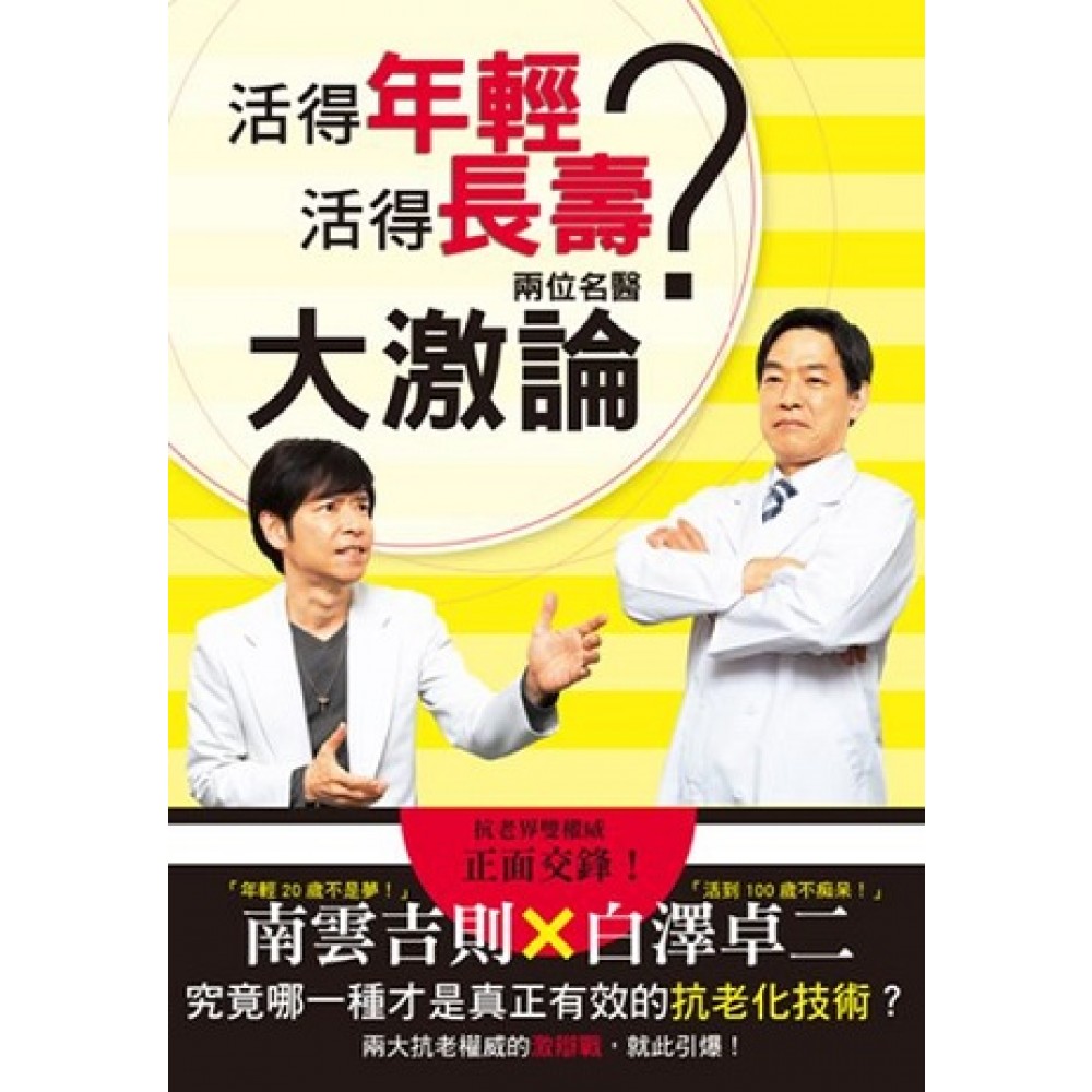 隨著高齡化社會的到來,「凍齡」、「美魔女」、「回春」……等等的抗老新名詞,逐漸興起,不論是書籍或是產品,只要添上這類詞句,往往會令人趨之若鶩,人氣帶動買氣,進而促成一種商機。<BR> 本書是由日本超具話題性的抗老名醫?南雲吉則與專門研究長壽基因的權威教授?白澤卓二,在一個日常的午後所展開的白熱化辯論賽。<BR> 主張「可年輕二十歲」的堅持碰上強調「活到百歲不癡呆」的理論,會擦出什麼樣的火花呢?又會為抗老界投下多大的震撼彈呢?集結兩大名醫的理論精華,全收錄此!<BR> 另外,書末附贈南雲醫生專為上班族及家庭主婦的設計,針對不同生活模式的兩大族群,貼心提供「喚回青春日課表」,再加碼提供兩大名醫的私房小食譜,攝取充足的營養開心防老回春度過每一天!