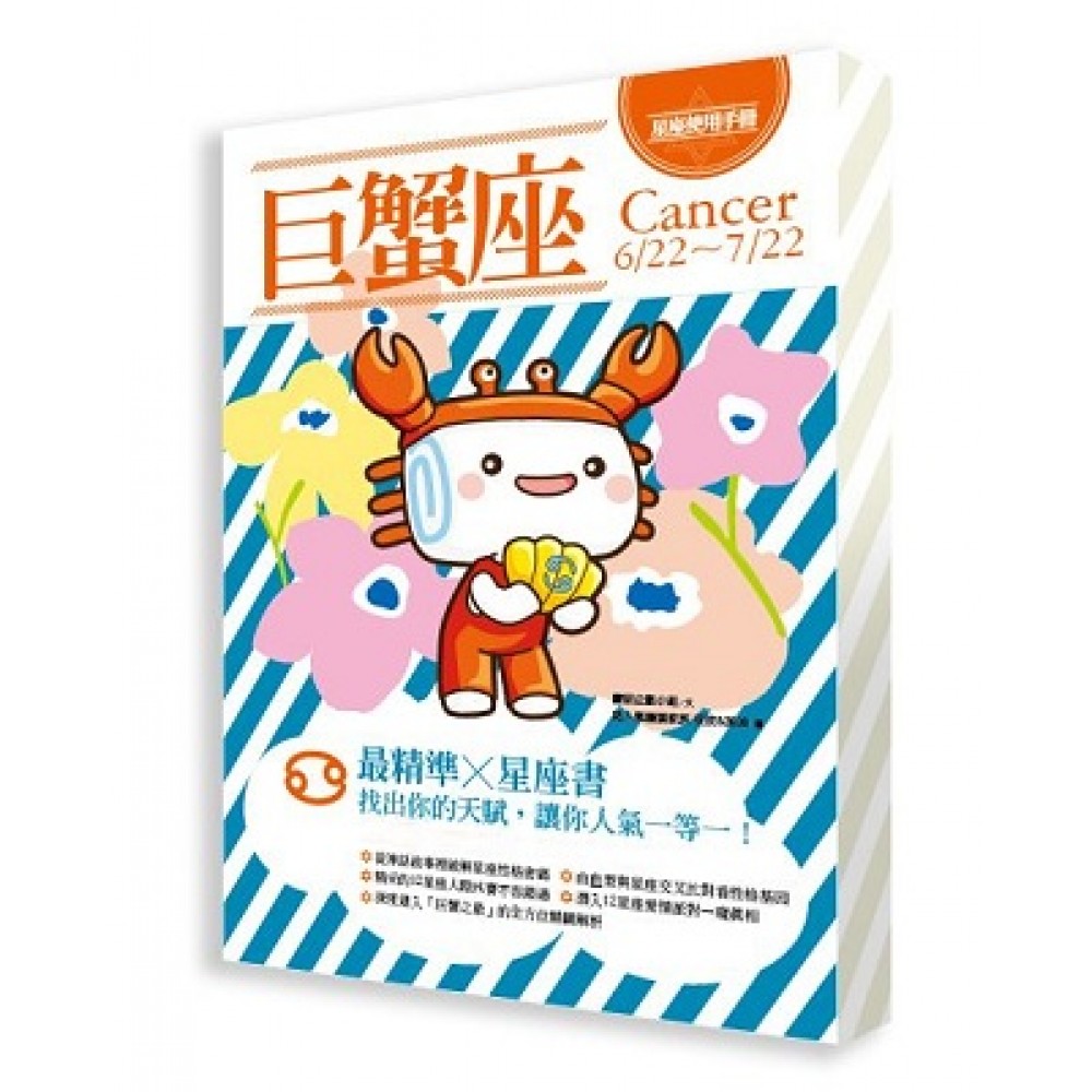 破解星座性格密碼, 不怕沒朋友,不怕沒人愛! 一本讓你看完立刻按讚的星座書! {《溫暖的巨蟹座》新裝上市} ★最精準的星座書,找出你的天賦,讓你人氣一等一! 從神話故事裡挖掘深層秘密、將血型和星座交叉比對看性格基因、欣賞精彩的12星座人際PK賽、潛入12星座愛情派對一窺真相、看看「巨蟹之最」的全方位精闢解析! ★獨家12星座饅頭人物 與在台灣、大陸、香港、日本、韓國、馬來西亞、澳洲等地區,極受歡迎的「饅頭家族」合作,以超可愛造型結合12星座特質,創造出深受年輕世代喜愛的獨家全新12星座饅頭人物圖像。 內容簡介 最暖心、最包容的巨蟹,很容易掌握嗎? 不!這一本星座隨身手冊, 讀巨蟹的心、爆巨蟹的料、掀巨蟹的底, 要讓你徹底瞭解並懂得如何與巨蟹相處! ★從巨蟹的神話故事裡,挖掘巨蟹深層性格裡的天大秘密! ★巨蟹骨子裡愛的是什麼?怕的是什麼?隱藏的是什麼?在乎的是什麼?痛恨的是什麼?……原形畢露,掀底成功! ★一樣都是巨蟹,A型巨蟹、B型巨蟹、O型巨蟹、AB型巨蟹有什麼不同?幫你交叉比對,發現性格基因中的蛛絲馬跡,輕鬆搞定四種性格的巨蟹! ★巨蟹和12星座的人際PK賽,誰是誰的心頭好、誰是誰的天生仇人、誰和誰老死不相往來、誰和誰初見三分鐘像認識了三年……一次揭露,毫不留情! ★巨蟹和12星座的愛情派對,誰和誰像蜜蜂見到花兒、誰和誰明明不合又離不開、誰和誰愛得死去活來卻無法天長地久、誰和誰是糾纏幾世的情緣……愛恨情仇,赤裸告白! ★12星座裡,誰最溫暖、誰最有親和力、誰最愛家、誰最念舊、誰最能包容……「巨蟹之最」全方位精闢解析! 目錄 PART1 巨蟹誕生囉! 基本資料 巨蟹的神話故事 巨蟹關鍵10問 第1問 巨蟹的原始性格 第2問 巨蟹的愛情性格 第3問 巨蟹的隱藏性格 第4問 巨蟹最愛做的事 第5問 巨蟹最害怕的事 第6問 巨蟹最得意的事 第7問 巨蟹最痛恨的事 第8問 巨蟹最在乎的事 第9問 巨蟹最快樂的事 第10問 當巨蟹遇到12星座,用這招! PART2 巨蟹X血型 A型巨蟹 B型巨蟹 O型巨蟹 AB型巨蟹 PART3 巨蟹X12星座人際PK賽 巨蟹★白羊 在付出中互相包容 巨蟹★金牛 注重家庭的理想配 巨蟹★雙子 默契就差那麼一點 巨蟹★巨蟹 相互依賴的兩個人 巨蟹★獅子 相互輝映燦爛光芒 巨蟹★處女 慢慢醞釀令人羡慕 巨蟹★天秤 協調不易難以相處 巨蟹★天蠍 一切盡在默契之中 巨蟹★射手 內與外的掙扎衝突 巨蟹★摩羯 互補踏實攜手到老 巨蟹★水瓶 彼此付出才能共享 巨蟹★雙魚 心意交融默契十足 PART4 巨蟹X12星座愛情派對 巨蟹★白羊 性格迥異中的交融 巨蟹★金牛 愛意濃厚人人稱羡 巨蟹★雙子 傳統與時尚的交會 巨蟹★巨蟹 在相互擁有中依賴 巨蟹★獅子 月亮和太陽的組合 巨蟹★處女 從友情開始的戀情 巨蟹★天秤 各有所思充滿挑戰 巨蟹★天蠍 此生非彼此而莫屬 巨蟹★射手 當柔情遇到了直率 巨蟹★摩羯 頗具緣分的有情人 巨蟹★水瓶 跨越千溝萬壑相愛 巨蟹★雙魚 一見傾心甜蜜相配 PART5 巨蟹之最 巨蟹之最1 心地善良 巨蟹之最2 適應力 巨蟹之最3 情緒化 巨蟹之最4 重視家庭 巨蟹之最5 保守 巨蟹之最6 真摯誠心 巨蟹之最7 感恩的心