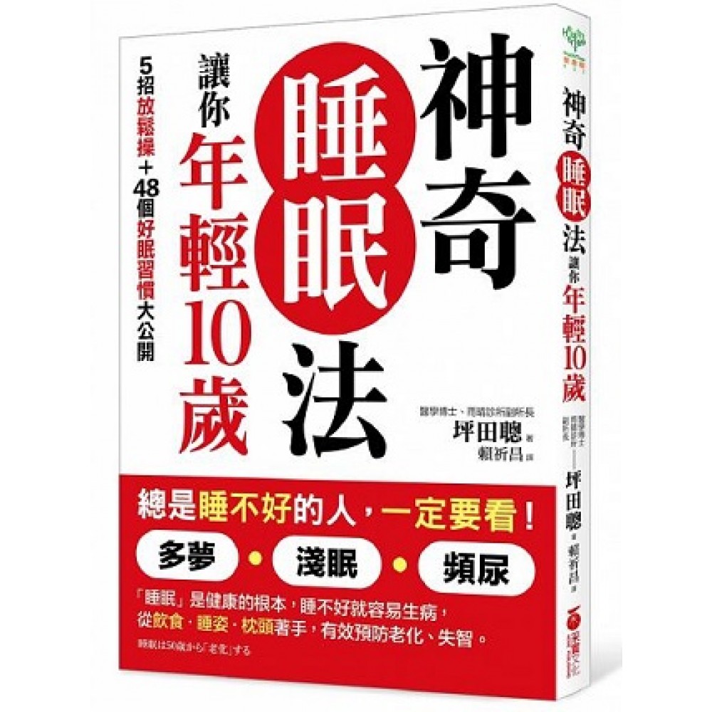 【前言】健康,來自於優質的睡眠 【第一章】驚!「睡眠能力」在二十歲後,即開始老化 ˙五十歲開始,睡眠能力會急速老化! ˙七個好習慣,有效提升睡眠品質 ˙「睡好覺」可修復身體,提升免疫力 ˙早上曬太陽,可增加睡眠激素的分泌 ˙人瑞一天睡七小時?品質比時間更重要 ˙驚!「睡眠障礙」會造成壽命減短 【Column 1】注入活力的「晨間體操」! ○1避免賴床的「神清氣爽操」 ○2喚醒身體的「快速清醒操」 【第二章】多夢、淺眠、老是睡不好?十二個快眠習慣,讓你輕鬆入睡 ˙常熬夜,罹癌機率會提高一•五倍 ˙每天記錄,找出最佳的睡眠模式 ˙不熬夜,就是最好的「降壓藥」 ˙規律的睡眠,有效預防「老人痴呆症」 ˙反推睡眠法,輕鬆算出就寢時間 ˙「鬧鐘」會降低睡眠品質,別過度依賴 ˙「睡眠債」不能積欠,避免身體受損 ˙每天午睡半小時,預防老化、失智 ˙每天走一萬步,有效提升睡眠品質 ˙睡前做「規律呼吸法」,幫助入睡 ˙泡溫水澡可提高體溫,產生睡意 ˙睡前收信,等於喝下兩杯「濃縮咖啡」 【Column 2】幫助入睡的「睡前體操」 ○1放鬆身體的「柔軟伸展操1」 ○2放鬆身體的「柔軟伸展操2」 【第三章】這樣吃,夜晚更好眠!養成「快眠體質」的9個飲食習慣 ˙睡不飽的人,最容易發胖! ˙一日三餐,有助於維持「規律的睡眠」 ˙色胺酸可幫助入睡,香蕉、牛奶是首選 ˙「褪黑激素」可抗老化,更能助眠 ˙主食換成「糙米」,更容易入眠 ˙海鮮、肉類可助眠,並提升免疫力 ˙細嚼慢嚥,邁向健康睡眠的第一步 ˙每天做健口操,鍛鍊舌頭肌肉 ˙睡前別做三件事:喝酒、抽菸、喝咖啡 【Column 3】讓你更好睡的「好眠體操」 ○1帶來一夜好眠的「肌肉放鬆操」 ○2解除壓力的「辦公室元氣操」 【第四章】睡好覺,也能消除煩惱!修復心靈疲憊的7個習慣 ˙坦然面對老化,也能改善睡眠 ˙自認沒睡好,是造成失眠的主因 ˙比平常早睡,是消除煩惱的特效藥 ˙適時縮短「睡眠時間」,可治療失眠 ˙早晨的回籠覺,能消除疲勞 ˙夫妻同房睡,是提高睡眠品質的關鍵 ˙常失眠,是罹患憂鬱症的高危險群 【Column 4】解壓放鬆的「拉筋椅子操」 ○1活動身體的「上半身扭轉操」 ○2伸展雙腿的「抬手伸腳操」 【第五章】燈光、溫度,決定睡眠品質!打造好眠環境的9個習慣 ˙配合季節調整室溫,營造舒眠環境 ˙棉被、睡衣數量,也會影響睡眠品質 ˙室內燈光別太亮,越暗越好睡 ˙睡前放「音樂」可隔離噪音,幫助入眠 ˙善用毛巾及坐墊,找出適合的枕頭高度 ˙「乳膠枕」不等於好枕頭,一定要慎選 ˙定期「洗棉被」,避免孳生細菌 ˙最佳睡姿是「仰睡為主,側睡為輔」 ˙「熱水袋」可配合體溫變化,改善失眠 【Colunn 5】讓心靈平靜的「身心放鬆法」 ○1舒緩臉部肌肉的「挑眉閉眼操」 ○2消除疲勞感的「速效穴道操」
