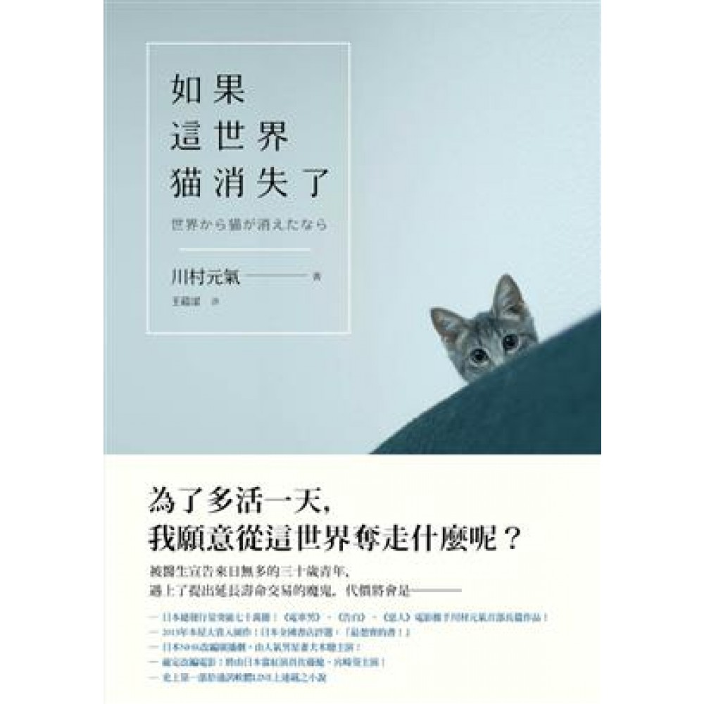 為了多活一天,我願意從這世界奪走什麼呢? 被醫生宣告來日無多的三十歲青年, 遇上了提出延長壽命交易的魔鬼,代價將會是── .日本總發行量突破七十萬冊!《電車男》、《告白》、《惡人》電影推手川村元氣首部長篇作品! .2013年本屋大賞入圍作!日本全國書店評選:「最想賣的書!」 .日本NHK改編廣播劇,由人氣男星妻夫木聰主演! .確定改編電影!將由日本當紅演員佐藤健、宮崎葵主演! .史上第一部於通訊軟體LINE上連載之小說 .中文版特別邀請知名插畫家恩佐繪製精美插圖 年僅三十,擔任郵差的平凡青年「我」,在一夕間被醫生宣告罹患絕症,只剩下三個月左右壽命── 突如其來的噩耗讓我陷入無比茫然之中,這時,跟我長得一模一樣、但打扮卻花俏誇張的「魔鬼」登門拜訪,向我提出了交易:只要讓世上的某些東西消失,就可以延長我的壽命──每消除一樣事物,就能讓我多活一天。 聽起來是很划算的交易!這世上沒必要的東西太多了,無聊的廣告面紙、沒有用的說明書、西瓜籽……到處都是。然而,事情並不如想像中簡單。首先,魔鬼讓這世界失去了電話,接著是電影,再來是時鐘……每部電影都是一段美麗的過去,失去電影的我,就像失去了所有的珍貴回憶;時鐘消失後我徹底明白了那滴答的聲響是限制我,也同時讓我得到自由的聲音。 之後,魔鬼提出要讓貓從世界上消失,以換取我一天的生命。 我的貓名叫高麗菜,是死去母親撿回來的棄貓,日復一日陪伴在孤獨的我身邊,是跟我相依為命的家人,但魔鬼將要讓這世界上的貓消失,來延長我一天的壽命。 一旦貓消失,這個世界會得到什麼,又將失去什麼? 如果我放棄了選擇,讓自己消失,這世界又會如何改變? 在我跟這世界道別前,誰又會是我最想見的人? 名人推薦 這本小說以輕盈的筆調,寫出了很驚人的事。那並不是用頭腦編織出來的文字,而是直接把感受訴諸文字,所以可以直接打動讀者的心。川村元氣的小說是音樂。——秋元康(作詞家) 雖然是一本小說,卻讓我覺得是一本哲學書。……為什麼我們在看電影時會興奮?為什麼我們看到繪畫會流淚?這本小說似乎告訴了我們其中的答案。(摘自文藝春秋2013年2月號)——角田光代(作家) 傷腦筋的是,這本書太有趣了。雖然文字很輕鬆,卻很深入;雖然笑聲不斷,卻很感傷。——小山薰堂(作家‧劇本作家) 看完之後,很想立刻去見生命中重要的人。——中谷美紀(女演員) 183頁第8行開始的那段話深深打動了我。有朝一日,當我生兒育女時,會和男主角的母親一樣,產生那樣的心情嗎?如果能夠有相同的想法,那就是我人生最完美的結局。——SEKAI NO OWARI FUKASE(音樂人) 慘了,我看得眼淚直流。川村元氣在製作電影時,簡直就像魔鬼,但這本小說簡直就是聖經嘛!——大根仁(電影導演)