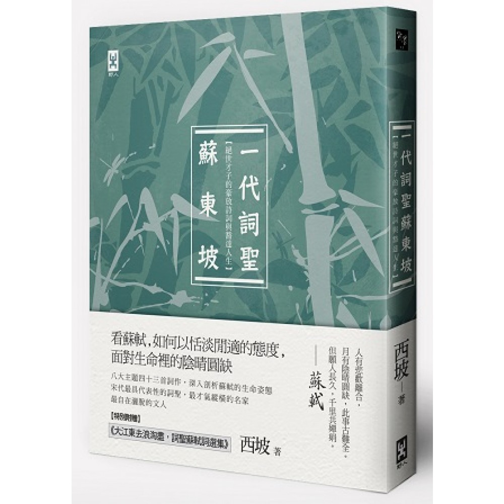 料峭春風吹酒醒,微冷,山頭斜照卻相迎。 回首向來蕭瑟處,歸去,也無風雨也無晴。 看蘇軾,如何以恬淡閒適的態度,面對生命裡的陰晴圓缺 八大主題四十三首詞作,深入剖析蘇軾的生命姿態 宋代最具代表性的詞聖,最才氣縱橫的名家,最自在灑脫的文人 【特別附贈】 《大江東去浪淘盡,詞聖蘇軾詞選集》(收錄一百九十六首蘇軾經典詞作及註釋) 人有悲歡離合,月有陰晴圓缺,此事古難全。但願人長久,千里共嬋娟。 ──蘇軾 蘇軾(1037-1101),中國歷史上最幽默、曠達的天才。 繁華的北宋盛世裡,出現了一個無可取代的天才。蘇軾先以他璀璨動人的詩文,點亮了宋朝文壇的星空。再以寵辱不驚的傲骨,展現了儒家的堅毅、老莊的超越和禪宗的平常心,成為了中國文學史上的一個傳奇。 作者西坡,特別挑選蘇軾生命中別具意義的的四十三首詞作,分為八大主題,品味這位一代詞聖的才與情:例如介紹蘇軾初露鋒芒的少年遊歷、情感真摯的手足情誼、生命中各具位置的三名女子,或是在官場上的幾度起伏波折。透過「以詞解人」的形式,讓我們得以聆聽這位大文豪至真至性的生命謳歌,貼近他飽滿剔透的人生境地。 文學大師林語堂曾經說過:「蘇東坡比中國其他的詩人更具有多面性天才的豐富感、變化感和幽默感,智能優異,心靈卻像天真的小孩。」就是這種豐沛自在,使人在閱讀蘇軾詩詞的同時,總能感受到生命裡的憂慮,彷彿化作一種簡單的微小幸福。 讀蘇軾詩詞,令人怡情、遣懷、放達;看蘇軾人生,令人惋惜、敬佩、感動。讓千古才子的灑脫文字,伴隨我們走過生命中也無風雨也無晴的美好時光。