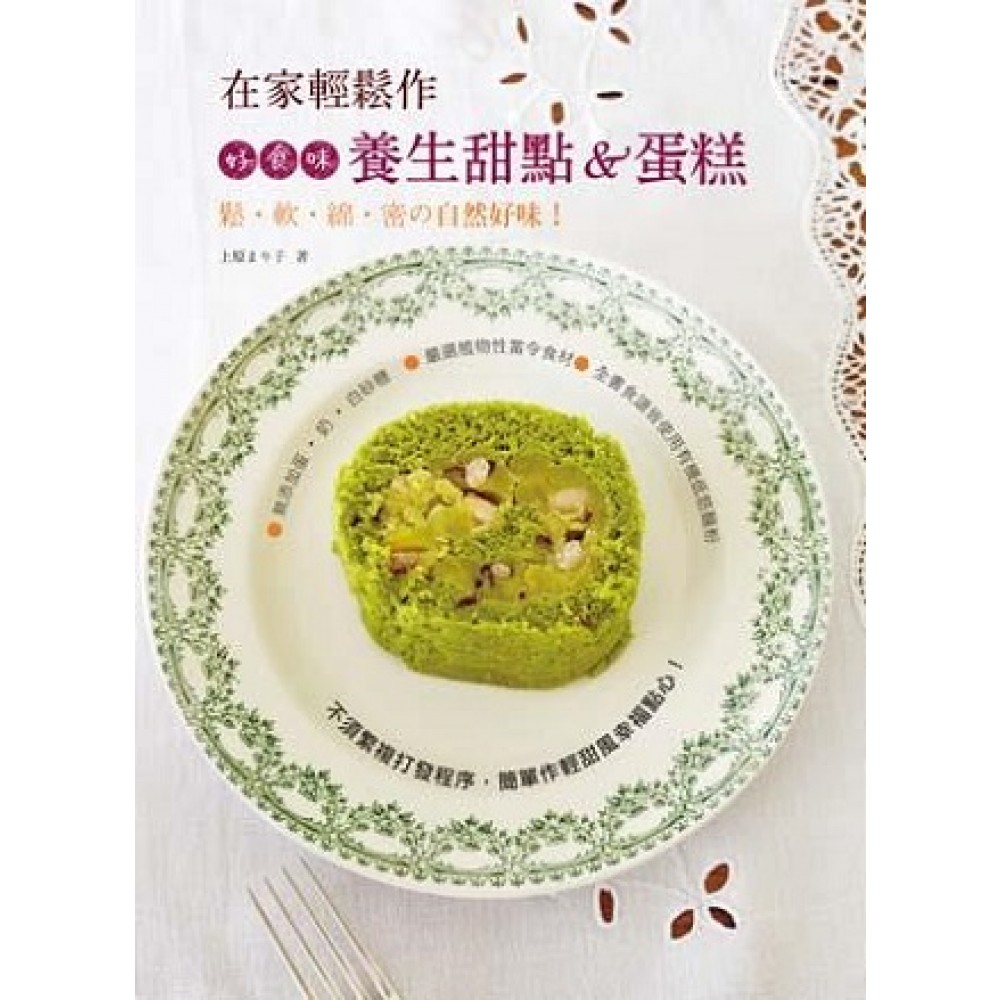 不須繁複打發程序,簡單作輕甜風幸福點心! ●無添加蛋˙奶˙白砂糖 ●嚴選植物性當令食材 ●全書食譜皆使用有機低筋麵粉 13款甜甜圈 × 7款戚風蛋糕 × 5款瑞士捲 × 8款米粉蛋糕 × 8款馬芬 不含蛋、乳製品,跟著本書製作一樣超好吃! 以有機豆乳、椰奶取代牛乳;豆腐取代奶油製作出香醇爽口的養生蛋糕! 本書跳脫傳統養生點心的樸素窠臼,介紹了瑞士捲、糖霜甜甜圈、戚風蛋糕等看起來精緻可愛的華麗蛋糕,藉此推廣品味輕甜點心的同時又能兼顧養生的飲食新主張! 嚴選當令的素材 本書使用了各式各樣的當令水果來製作甜點,可依個人喜好,隨四季變化更換水果種類,盡情享受養生烘焙的百變樂趣吧! 免除繁複的打發功夫,作法就是這麼簡單! 打發雞蛋、奶油等困難的作蛋糕技巧,本書食譜將以完全簡化!只需要5分鐘製作麵團,放入烤箱烘焙就OK! 令視甜如命的甜點迷也愛不釋口的養生蛋糕 低糖少油的烘焙方式,雖然讓蛋糕口感稍為清淡,但更凸顯了食材本身的香甜味,且調和的材料份量,更讓人百吃不厭且耐人尋味。
