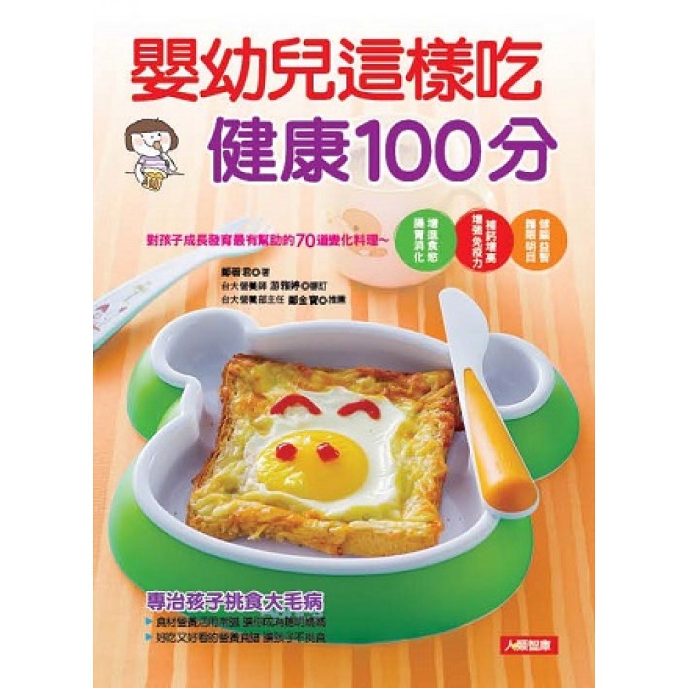聰明擇食,攸關孩子一生健康 每個孩子都是父母的心肝寶貝,餵養的食物也攸關孩子的健康和智力發展,對於離乳之後的副食品,當然更是馬虎不得。市面上的食材千百種,新手父母如何正確擇食,對嬰幼兒往後的成長發育也有著深遠影響。 本書針對嬰幼兒精心設計6大類營養食譜,包含大腦發育、視力保健、幫助成長、提振食慾、促進消化、強化免疫力,兼顧每個成長階段所需的各種營養成分,為家長把關飲食安全,呵護孩子健康成長。 孩子的每一個發展階段,對於父母來說都是全新的學習和挑戰,本書除了提供70道美味菜單之外,也針對家長們最關心的餵養問題,以及育兒新知,作最全面、最精闢的解說,完整剖析不同年齡階段的飲食照護。寶寶吃得開心,父母自然放心。 除了「吃好」以外,更重要的是「吃對」,本書以孩子的多元發展為目標,運用天然食材,調配出讓色、香、味具全的食譜,並提供詳盡的營養分析,方便家長計算營養素,避免過與不及的憂慮,且書中每道食譜都搭配活潑精美的圖片,完整敘述烹調方法,讓新手爸媽一看就懂、一學就會。 繽紛的菜色,是吸引寶寶吃飯的絕佳方法,除了能有效提振胃口之外,還能改正挑食毛病,攝取更豐富多元的營養素。更大一點的孩子,還能與父母一同享受下廚的樂趣,從小培養均衡飲食的概念,同時也能拉近親子間的距離。希望每位家長藉由此書,為孩子的健康打下紮實基礎,相信這是父母給孩子最寶貴的資產。 台大營養部主任 鄭金寶 審訂序 健康,是父母給孩子一輩子的禮物 由於現今社會繁忙,導致外食人口遽增,加上受到飲食西化的影響,家長與孩子容易攝取到高油、高鹽且高熱量的料理。雖說「民以食為天」,但攝取的食物到底是不是符合我們身體所需?我們對於均衡營養的觀念又知道多少? 孩子猶如海綿,對於我們給予的知識、食物全然吸收,但是這些真的適合他們嗎?研究調查顯示,孩童的偏食、喜愛高熱量甜食、零食等問題,可能影響孩子的發展與學習能力,並成為導致肥胖的元凶,日後也可能演變成三高病症,實在是一大隱憂。 許多疾病的發生與不良的飲食習慣息息相關,筆者認為營養教育應從小做起,越早開始建立良好的飲食習慣,越能夠減少罹病風險,正值快速發展階段的孩童,最需要攝取均衡的營養,以提供學習與成長的動力。 本書深入淺出的圖文與精美食譜,完整介紹食物與孩子成長所需的各種營養素,設計了促進大腦發育、護眼明目、增高成長、提升食慾、幫助消化、增強免疫力6大功效菜單,讓家長可以依循此書輕鬆準備健康、美味兼具的創意餐點。 作者運用許多食材元素,藉由可愛的造型與豐富的色彩,配搭出色香味俱全的食譜。與孩子們一起動手做、互相分享,不知不覺中,培養孩子均衡飲食的觀念,也強化了親子間的互動、營造孩子一生的健康! 台大營養師 游雅婷