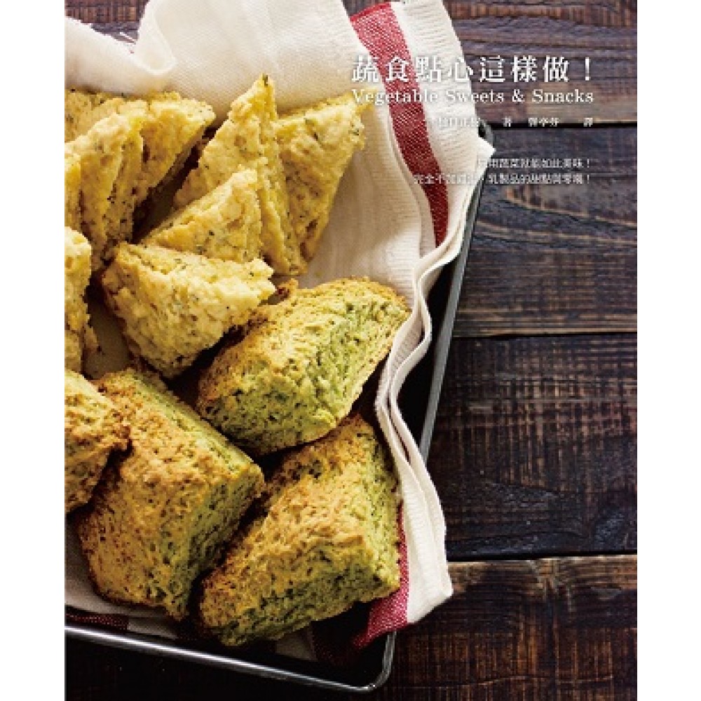 蔬食點心,完全「不使用蛋&乳製品」!收錄56道讓身心獲得片刻舒緩的單純美味。 正餐之外,在閒暇之餘品嚐些小點心或零嘴,可以增添生活的樂趣。但應如何在品嚐美味點心的同時,避免吃進過多的添加物呢?除此之外,如果還能在吃點心的同時也能攝取更多蔬食營養就更棒了! 本書作者以天然、健康為出發點,使用多色蔬菜變化出各種西式‧和風點心。沒有太過複雜的步驟,不使用人工色素,食材也多是如南瓜、青椒、胡蘿蔔、洋蔥、馬鈴薯等等,隨手可得的常見蔬菜;從西式的餅乾、蛋糕、鬆餅、甜甜圈、布丁,到日式的煎包、仙貝、大福、羊羹等等,種類繁多。簡單而樸實的外表,絲毫不減其美味。 若是家中有對蔬菜挑食的小朋友,也不妨試著將蔬菜做成點心,讓小朋友在享用點心的同時,也能一併吃進蔬菜的膳食纖維與營養素。自己做的點心就能吃得放心,而且又大量地使用蔬菜,就算每天吃,也不用怕會造成身體額外的負擔!【本書特色】●材料多為隨手可得的蔬菜:清冰箱&省錢最實在! 您是否正為了冰箱裡用不完的蔬菜而煩惱著呢?別煩惱了。不如試著做成好吃的蔬食點心吧!將南瓜蒸熟搗碎做成鬆軟的司康、洋蔥炒熟做成濕潤鬆軟的瑪芬、馬鈴薯一半切絲一半磨泥做成口感獨特的美式鬆餅、青蔥和韭菜切段做成香氣四溢的美式鹹鬆餅,茼蒿就拿來做成深綠而口感綿密的長條蛋糕,菠菜則是可以拌炒後做成蒸杯子蛋糕。 今天吃什麼點心,就看冰箱裡有什麼菜吧!●完全不使用蛋&乳製品,蛋奶素者也可以安心享用! 本書以對身體較溫和的甜根菜糖取代砂糖、以豆漿代替牛奶;全書56道料理食譜,從蛋糕、餅乾、瑪芬、可麗餅到布丁,完全不使用雞蛋和乳製品,即便是蛋奶素者、乳糖不耐症者,也可以安心享用!●蔬菜做成的點心天天吃,既營養又健康。 均衡的攝取各類蔬菜,才能維持身體的各項機能正常運作。如果您平常無法從三餐裡攝取到適量的蔬菜,或許可以試著將那些蔬菜,做成色彩繽紛、香氣四溢的點心!例如很多人不敢吃的蔬菜之一胡蘿蔔。可以將它磨成泥加上麵粉,揉團後炸成胡蘿蔔甜心球。圓滾滾的可愛造型易於入口,鬆軟的口感也不輸甜甜圈。●保存方法與食用期限皆有清楚標示 手作的點心非常天然,所以保存期限其實並不長。作者在每個食譜都細心地標示保存方法跟食用期限;並且貼心地提醒您食用時,應要如何使用烤箱或微波爐,使料理回到最佳品嚐風味。即便一次做太多,也不用怕!