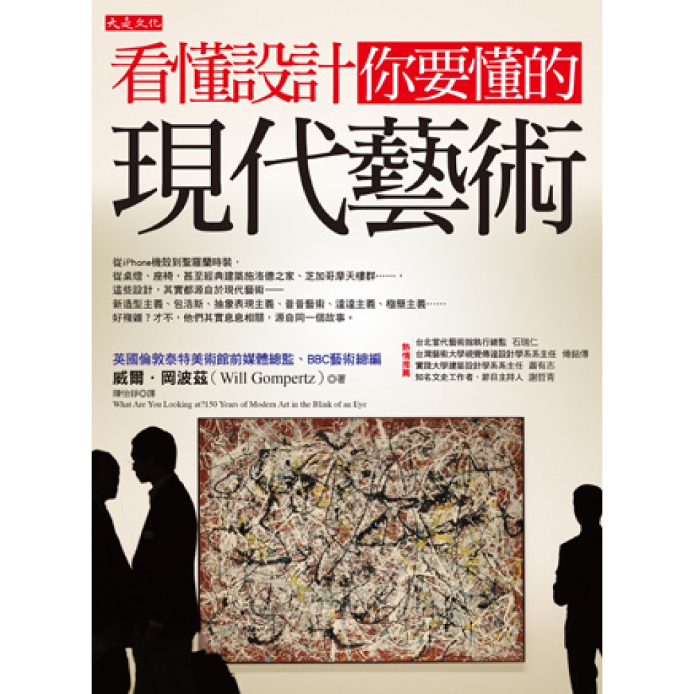 從iPhone機殼到聖羅蘭時裝, 從桌燈、座椅,甚至經典建築施洛德之家、芝加哥摩天樓群……, 這些設計,其實都源自於現代藝術—— 新造型主義、包浩斯、抽象表現主義、普普藝術、達達主義、極簡主義…… 好複雜?才不,他們其實是同一個故事。 在本書中,你將看到當代商品與建築設計的源頭: ◎有些設計其實跟美無關,只為了刺激你思考,因為它們來自達達主義。 ◎文學、戲劇、芭蕾舞劇……為何都在「超現實」?建議你看看達利的作品。 ◎那些不能穿的衣服、不能吃的蛋糕,為什麼大家都搶著買? 喔,原來這就是普普藝術。 ◎什麼地板雕塑?這不就是踏腳墊嗎?原來是沿襲簡化線條的極簡藝術。 ◎有些作品遠看都一樣,近看每一個都有差異?看看安迪沃荷設計的濃湯罐吧! 現代藝術中的各種流派雖然各有主張、風格迥異,其實是個一脈相承、無法切割的精采故事: ◎包浩斯講究簡約、品味的現代主義,近百年後的今天仍大受歡迎,達達主義藝術家為什麼反對?(他們什麼都反,所以叫做達達) ◎達達藝術融入了精神分析學家佛洛伊德的潛意識理論,催生了超現實主義;達利的畫讓你毛毛的嗎?還有誰的畫讓你看了驚悚?可能就是超現實喔。 ◎古根漢的美術館,美國最偉大畫家波洛克,你一定看過卻不知道的羅斯科作品,為什麼都叫做「抽象表現主義」?為什麼這些藝術家多半是憂鬱的孤獨英雄? ◎抽象表現主義要嘛超亂畫、要嘛只有色塊,怎麼會刺激普普藝術產生?普普藝術超簡單,你一定也會,只要準備剪刀、糨糊和雜誌,不然用過的香水瓶也行。安迪沃荷為什麼這樣也能成大師? ◎後現代主義的作品充滿影射和嘲諷,千萬別相信你第一眼看到的東西。如果你感覺被騙,那通常就是…… 本書作者英國倫敦泰特美術館前媒體總監岡波茲,以一般大眾一定喜歡聽的說故事風格,為您介紹150年來的現代藝術史。涵蓋27個重要的流派與概念,重要藝術家超過100人,作品照片超過140張,內容超級豐富。 為了方便攜帶與閱讀,原書分拆兩本書出版,一本是《這個作品,怎麼這麼貴?:一句話說出現代藝術與大師特色》(已於11月出版) ,從現代藝術如何從古典藝術走出來開始,側重繪畫。從莫內先登場,然後敘述印象主義如何從被嘲諷到廣受歡迎,日本浮世繪如何影響印象主義,直到俄國藝術家為了「為人民服務」,從藝術家成為設計海報、服裝、家具的設計師。另外一本就是《看懂設計,你要懂的現代藝術》。 另外,本書也將解開一些現代設計與當代藝術的難懂之謎: ◎明明是一堆垃圾放在一起,憑什麼就成了藝術? ◎把「裸女身體當筆刷」,這是噱頭還是藝術? ◎外人看來像是隨意的創意,其實是大師的精準執行。 ◎為什麼博物館喜歡展出觀念藝術?怎樣算是「好的」觀念藝術? ◎最後你當然得知道,藝術經紀人是如何詮釋作品的,怎麼一轉手價值就翻十倍。 本書為非藝術、設計背景的讀者製作了〈現代藝術流派關係圖〉、〈各流派大師藝術主張一覽表〉,幫助大家更快掌握解讀現代藝術的「眉角」。 從「純觀賞的」美學,到「能用的」美學,造就了今天大家喜愛的精品、時尚、建築;不同流派的演變與特色,原來都息息相關,無法切割。這裡的精采故事,將大大超越網路的片段式瀏覽。 名人推薦 台北當代藝術館執行總監 石瑞仁 台灣藝術大學視覺傳達設計學系系主任 傅銘傳 實踐大學建築設計學系系主任 蕭有志 知名文史工作者、節目主持人 謝哲青