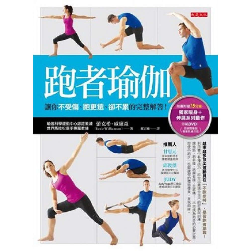 推薦序 將跑步與瑜伽做完美的結合! 長期以來「瑜伽」一直是最受大眾歡迎的「靜態運動」,也一直被許多人視為增加柔軟度的運動,但事實上,瑜伽是教導人們,如何正確使用身與心整體運作的學問,不是只將身體轉來轉去,把關節拗到極限的一種柔軟度練習而已。 而「跑步」不只是全世界最普及且最受一般人歡迎的運動,也是檢視一個人身體狀況的「健康櫥窗」,在跑步的過程中,可以觀察一個人心肺、肌力、肌耐力、動作模式⋯⋯甚至全身的代謝與恢復能力的總合,實在是非常方便而有益身心的運動。 然而在過去一般人的運動觀念與習慣裡,喜歡練瑜伽的人,可能不喜歡跑步。喜歡跑步的人,「懶得」練瑜伽。所以,瑜伽與跑步的人似乎是不同族群的兩種人,殊不知瑜伽與跑步是一靜一動,是運動的一體兩面,可以互相配合、相輔相成的兩項基本運動。 若把瑜伽比喻為內功,那跑步就是外功。若說瑜伽是重視身體運動的品質,則跑步就可以視為身體運動的總體能力。瑜伽提供了跑步更好的身體基礎,跑步則可以檢視身心整體運作是否順暢恰當,一為體,一為用,真是完美的組合! 這本書,深入淺出地把這兩種運動相互運用的相關知識與觀念,用豐富的圖例與簡潔的文字來描述,相信不論是對瑜伽或跑步的愛好者而言都是一大福音。 而且,透過這本書的介紹,這兩種運動的愛好者,更能同時體會這兩項運動的好處,進而嘗試把這兩項運動結合在一起,讓瑜伽的愛好者喜歡跑步,跑步的愛好者因練習瑜伽而跑得更好。 長期以來,我一直倡導的運動健護健康方程式=心態+體能+保養+營養,和這本跑者瑜伽的觀念幾乎不謀而合,因為瑜伽強調的是身心相互為用,重視的是運動品質:運動要配合呼吸、正確的關節與肌肉的運用、兼顧穩定力量(Stability)與身體各部分的移動能力(Mobility)、運動前後要重視身體的放鬆與伸展,而且要專注當下不要一心二用、心有旁騖。 用這樣的觀念與訓練模式,不但可以讓身體更健康、提升運動與生活表現,更可以避免不必要的運動傷害與身體的痠痛。所以,這本書提供的觀念、知識與訓練方法,實在是重視生活品質與熱愛運動的現代人,都應該具備的基本常識,我也願在此大力地推薦此書,願因此有更多的人身心靈更健康、生活更快樂! 甘思元(國家運動選手御用健護教練) 推薦序 跑步是一種動態的冥想 跑步,看起來很簡單,實際上並不容易;跑步等於是走路的加快版,因此路走不好,自然就跑不好,不信,去田徑場靜下心來仔細看每一個跑步的人,你會發現果真如此,姿勢千奇百怪應有盡有。 想要跑得好,就要先練習走路,想要學會走路,就必須先練習認識自己的身體,而瑜伽就是最理想的運動,透過瑜伽的體位法,人們可姿伸展身體的每一個部位,在伸展中發現自己緊繃的肌肉,透過吸氣伸展、吐氣放鬆的一連串的動作,可以充分讓全身保持柔軟又有彈性的狀態,就像一顆球。 沒錯!你要讓自己的身體像一顆球,跑步就像一顆球般不費力地反彈而上,道理就在於借力使力,透過踩在地面的力量所產生的地面反作用力,藉由此力去位移自己的身體,同時利用足弓去吸收反作用力的震動,減少身體關節的磨損。 瑜伽,就是最好的方法,它教你如何讓身體變成一粒具有彈性的球,它也教你如何在跑步之前培養自己寧靜的心情,跑步是一種自我對話,瑜伽也是,透過瑜伽的訓練,跑者在跑步的時候能保持警醒的心,覺察身體細微的改變,不為勝利和榮耀而跑,只活在當下,享受活著的喜悅。 也就是說,跑步變成一種動態的冥想,跑者在跑步當中,也在練習瑜伽的冥想法;在瑜伽體位法的伸展當中,也在為跑步做準備。這時,跑步和瑜伽合而為一,跑者同時也是瑜伽練習者,二者其實本來就合而為一。 跑步,也是一種癮,很多人跑著跑著會上癮,只要一上癮就會有副作用,特別是身體的傷害,像是膝蓋痛或是小腿抽筋,足底筋膜炎等等,這時瑜伽也同時扮演修復的功能,瑜伽有很多的修復方法可以針對跑者改善其受傷的部位,例如:腳底會痛,這時就要多伸展小腿肚的肌肉,因為很多跑者只重視跑這個動作,而忽略了跑之前的暖身,跑之後的伸展,跑步當下的無為而為的心態,這三個步驟若其中一環出現問題,就會如野火燎原最後會演變成長期的慢性傷害。 這也是很多人跑出快感的同時也種下病根的主因,瑜伽是一種靜態的修練,對肌肉和全身的平衡有其全面性幫助;跑步是一種動態的修練,對心血管的循環大有助益,瑜伽和跑步,一靜一動,一陰一陽,二者若能相互練習,就能幫助身體達到陰陽平衡的最佳狀態,你還在等什麼呢? 快準備你的瑜伽墊和球鞋吧,一起加入瑜伽跑者的行列吧! Judy(JudyYoga 樂活瑜伽療癒師資培訓總監)
