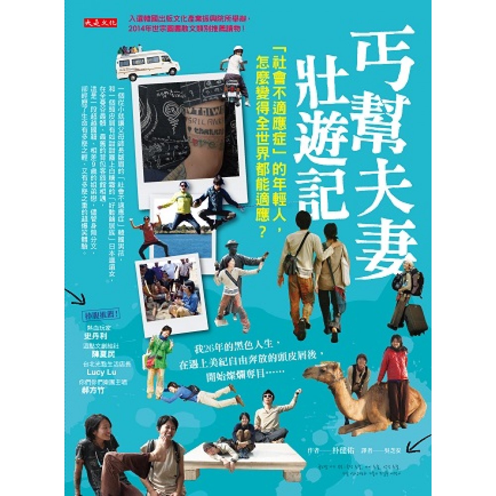 打破所有既定規則的超好笑壯遊記! 韓國出版文化產業振興院推薦讀物! 一個從小就讓父母師長皺眉、惹毛警察入獄過的「社會不適應症」韓國男孩, 和一個頭皮屑有如甜甜圈上白糖霜的「好動繭居族」日本邋遢女, 在全曼谷最髒最舊的背包客旅館相遇,決定跳過戀愛直接結婚。 這是一段超越國籍,相差9歲的姐弟戀,他們身無分文, 從台灣開始,邊旅行、邊做工,盡快讓自己適應陌生環境的同時, 還得適應身邊其實還很陌生的配偶。 ◎健佑遇見美紀之前的人生…… 反叛師長、離家出走、慘遭退學,甚至因惹毛警察而入過獄。 十九歲時,突發奇想飛到日本當年紀最小的非法打工族…… 耗上十年青春玩樂團,卻因一起露鳥事件,還沒出道就遭電視台封殺。 這時,家中發生突變,不得不暫時壓下內心過人的火氣迎合社會, 卻怎麼樣也熬不過內心對自由的渴望,一個衝動,飛到泰國, 結果遇上了扭轉命運的女人──美紀。 ◎跳過戀愛結婚去! 第一次約會,美紀選擇屍體博物館。健佑深深被這個比吳哥窟還神秘的女人吸引, 第二次見面,她們就決定放膽結婚去。卻差點被意想不到的文化差異打敗, 美紀惹毛公公,健佑則差點和美紀的大哥吵起來……。 兩個人到底適不適合彼此呢?美紀的回答是︰「不然,就先結婚試試吧!」 將他們拉上一趟全部家當只有27萬韓圜(約新台幣7,941元) 長達一年六個月的蜜月旅行。 ◎無終點的蜜月與沒有家的歸途 ‧第一站︰健佑覺得,台灣是個打破所有偏見的幸福國度!有著「與眾不同的友善」。 ‧為了省餐費,他在澳洲狂吃檸檬,導致悲慘的屁股「菊花殘」事件。還被當成北韓人……。澳洲?「從此上了我的黑名單」。 ‧在印尼,和「裝熟」的小販吵架,成為被美紀甩一巴掌的不成熟老公……。 ‧在泰國,拜訪只有當地人才知道的「地獄寺院」,這裡最適合不乖的小孩來瞧瞧! ‧寮國,在足以造成路面坍方的暴雨中,捨命陪著美紀拜訪藍靛族……。 ‧中國,遇見奇人姜老師,發現真實的自己。 ◎回韓國充電,再度遠行印度、泰國──令人輸得五體投地的神之國度 在這個只存在神的國家,健佑當上了窮途末路的印度導遊。 到露天攤販吃飯,人坐在椅子上,桌下則有老鼠相伴。 結果,遭遇了悲慘的「菊花與嘴巴哀嚎雙重奏」,只好和美紀逃到泰國……。 在泰國偏遠鄉下的佛教共同社區, 又陰錯陽差參加了「又囧又驚嚇」的「排毒(便)活動」……。 還有一百四十四年來世界規模最大的宗教慶典──大壺節。 這裡,沒被踩死算你幸運,他們親身經歷了生命有多麼之輕、又有多麼之重。 【特別附錄】2014年12月9日~2015年3月5日 「每天後悔」但「來了真好」的韓夫日婦台灣徒步(+露宿街頭)環島之旅專訪 捧腹推薦! 熱血玩家 史丹利 逗點文創結社 陳夏民 台北光點生活店長 Lucy Lu 你們你們樂團主唱 郝方竹 還有誰能樂在吃苦,把苦行稱作幸福?他們超越國境、讓我們見識到無欲一身輕的極致,如果有順位排名,那金牌必屬這對夫婦不可—相信他們就算在俄羅斯這麼大的國家相見也依然會相愛。 ──知名搖滾樂團No Brain主唱 李成宇 我們在以成功之名的強求下,看了多少臉色,又過著多麼痛苦的日子?但所謂的成功究竟是什麼?雖然不知道現今社會想要的成功是什麼,但自稱乞丐、踏著輕鬆的腳步,遇上命中注定、戴著頭皮屑王冠的公主,如同一對蝴蝶自在地環遊世界,不也是一種成功嗎?別再猶豫,翻開書本,像乞丐一樣踏上美麗的青春之路吧!你問這是什麼意思……搖滾吧!!! ──知名搖滾樂團Crying Nut貝斯手 韓京錄