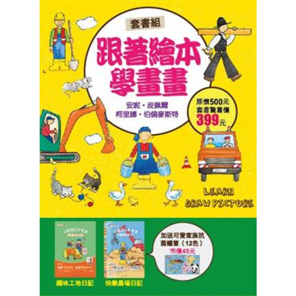 隨套書送~~可愛家族抗菌蠟筆(12色)一盒 「在趣味工地與快樂農場裡面一邊工作一邊畫畫,照著步驟1234,馬上就畫完囉!」 本套書將帶領你成為日常工地與農場的小小繪畫藝術家。在經歷了一場令人興奮的擲骰子遊戲後,孩子們會學習如何繪製典型的施工現場與農場體驗,用簡單的圖案組合來描繪,只需要短短的四個步驟就能自己完成畫作。故事中的每張圖畫,都詳細地解釋出各種工地與農場器具的使用,從挖掘機、起重機,到耕耘機和乾草車等等的精彩世界,房子從破土動工到完成的每一個階段都認真地參與! 請嘗試畫出這些工地與農場的圖畫,並用心著色,成為一個小藝術家吧!用最簡單的繪本教學樣式來啟發創意,不但學會畫畫,還可以自己編故事,真是輕鬆又好玩。即使是從未親眼見過工地工程和農場生活的孩子們,也都能發揮無限想像力,讓我們一起來體驗趣味的故事吧! 本書特色 *共收錄26篇有趣又好玩的繪本故事,孩子跟著繪本學畫畫,一邊畫圖一邊閱讀故事書。 *本套書的繪畫教學僅需4個步驟就完成了!簡單又輕鬆!即使是幼齡的兒童也能快速畫出。 *每個主題都可以用最簡單的幾何圖形組合完成。 *本套書提供基本的畫畫工具介紹,以及上色和混色的方法,一目瞭然的說明,讓你畫出神奇工程不再是難事! 【目錄─趣味工地巡遊圖】 將每個工程機器與人物的篇章都集合在一起,做成一張趣味工地巡遊圖,定下遊戲規則,就能一起來玩擲骰子遊戲囉! 【工地的重要人物】 趣味工地裡有工頭、木匠、瓦匠、泥工等,還有其他好幾位工人,大家都有各自的專長,讓我們一起進入繪本裡,看看他們的工作內容,試著畫出來吧!學會了方法後也能替這些人物們創造出不同造型呦~ 【神奇機器】 挖土機、推土機、工程車、吊車等等,這些在趣味工地不可或缺的重要機器,都是如何畫出來的呢?例如手推車,只需要從畫一個梯形和圓形開始,加上手柄、輪圈,就好像真的可以載貨滾動一樣,馬上就畫好了。 【目錄─快樂農場地圖】 將每隻小動物的篇章都集合在一起,做成一張快樂農場地圖,定下遊戲規則,就能一起來玩擲骰子遊戲囉! 【農場的主人】 這間農場有男主人本尼和女主人貝蒂娜,讓我們一起進入繪本裡,看看他們的日常生活,以及造型,試著畫出來吧!學會了方法後也能畫出其他職業的人物或是嘗試不同造型呦~ 【快樂動物們】 鴨子愛瑪、小馬帕布羅、兔子羽果,這些在農場生活的可愛動物們,都是如何畫出來的呢?例如兔子,從後面看只能看到一個圓滾滾的屁股,還有一個短小的尾巴,以及高聳的長耳朵,可愛極了。每一隻開始描繪之前,都會有簡單的介紹,讓你認識這些平日不一定能見到的動物。