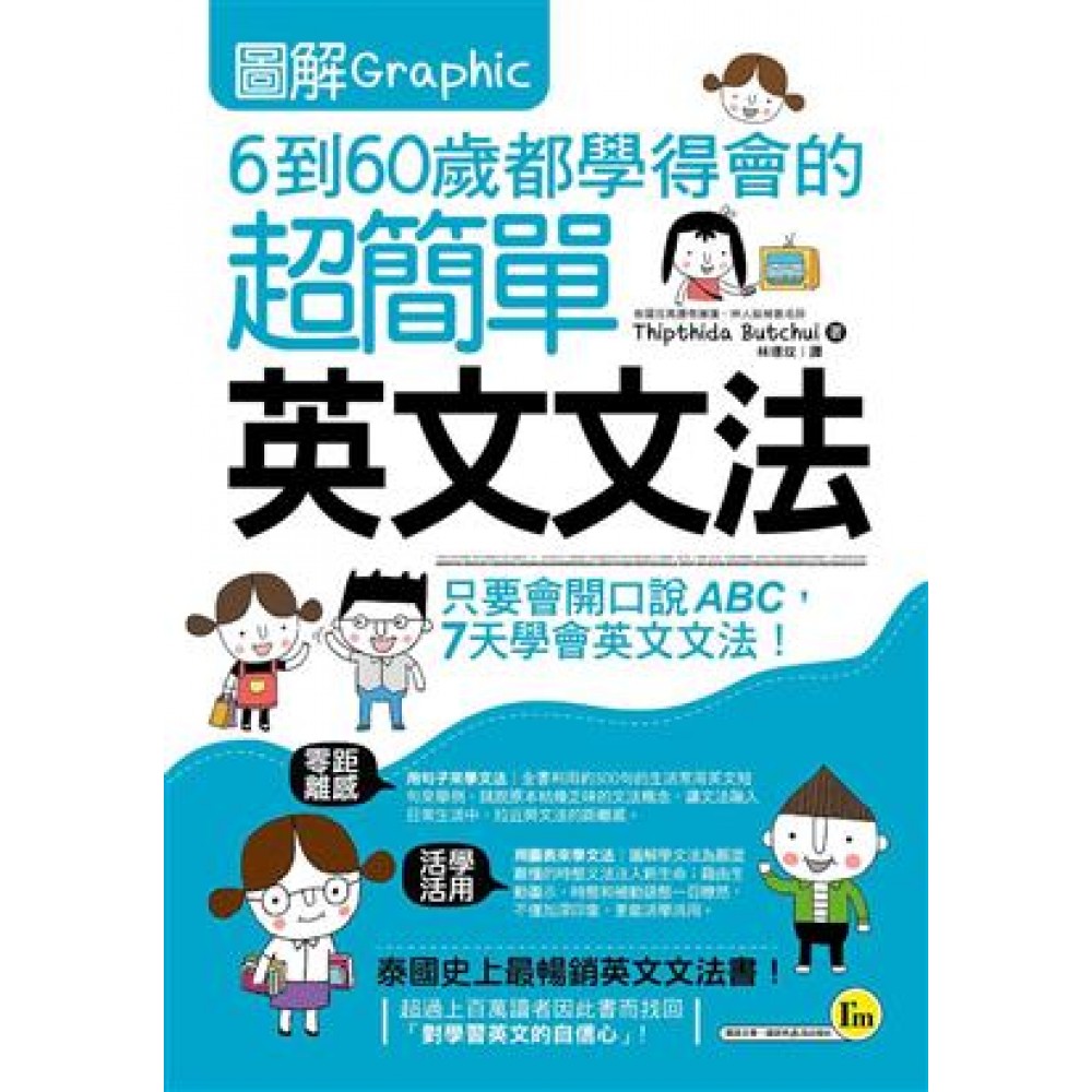困擾你們大半輩子的英文文法有救了! 因為, 泰國百萬讀者擁護、神人級補教名師Thipthida Butchui, 獨創神奇的「英文文法拼圖」, 把英文文法變簡單、有趣了! 《圖解6到60歲都學得會的超簡單英文文法》, 利用神奇的「英文文法拼圖」, 只要7天,168個小時, 馬上學會── 「你吃午餐了嗎?」要用「現在式」還是「過去式」? 「你去過巴黎嗎?」要用「現在完成式」還是「過去完成式」? 「will」和「be going to」有什麼差別? 「主動語態」、「被動語態」又是什麼? 泰國史上最暢銷的「超級簡單」英文文法書! 超過上百萬讀者因此書而找回「對學習英文的自信心」! 只要會開口說ABC,7天馬上學會英文文法! 6到60歲都看得懂、學得會── 零距離感 用句子學文法│《圖解6到60歲都學得會的超簡單英文文法》利用約500句的生活常用英文短句來舉例說明,跳脫原本枯燥乏味的文法刻板講述,讓文法融入日常生活中,拉近與文法的距離感。 活學活用 用圖表學文法│《圖解6到60歲都學得會的超簡單英文文法》運用全圖解來學習文法,為艱澀難懂的時態文法注入新生命;藉由生動圖示,時態和被動語態一目瞭然,不僅加深印象,更能活學活用。 依循文法公式,拼湊完整的文法拼圖── 拼圖一 認識動詞的變化 認識動詞為學習文法的第一步。然而,熟悉動詞的變化規則,為學習文法的核心。英文文法是由不同的動詞變化而組成各式各樣的時態及語法。掌握動詞變化的原則,為英文文法奠定不可動搖的基礎。 拼圖二 現在式 「現在式」通常會是第一個被提到的時態。原因有很多:第一個原因當然是因為它的結構最簡單,如果我們先從簡單的時態開始學起,會比較有動力去學其他的時態;第二個原因是,「現在式」是最常用的時態。 拼圖三 過去式 「過去式」的句型結構正如其名:簡單、好懂,一點都不複雜。「過去式」通常適用於已發生在過去某時間點或已結束的事件、以前常常做的事情或小時候經常做的事情……等。 拼圖四 未來式 「未來式」是未來時態家族中最常用到的,句型結構也很簡單,被廣泛地運用在敘述未來的事件。「未來式」適用於敘述即將在未來某一個時間點發生與結束的事情,是簡單的情況,發生後隨即結束。 拼圖五 「語態」的呈現 「Voice」解釋成中文就是「語態」。意思就是表達「動詞的狀態」,「語態」賦予句子生命,藉由動詞來表達主詞的立場(主動或被動)。