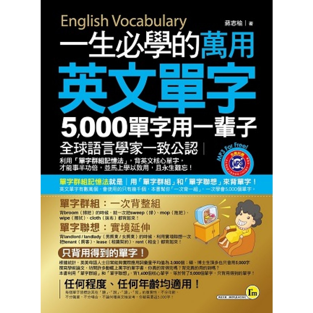 英文單字雖然有上萬個, 但其實英美母語人士真正在用的, 卻只有寥寥數千個。 坊間書籍動不動上萬字, 不僅單字難背, 背起來也不知道可以用在哪! 根據統計,英美母語人士日常能夠實際應用詞彙量平均值為 3,000個;碩、博士生頂多也只會用5,000字撰寫學術論文,坊間許多動輒上萬字的單字書,你真的背得完嗎?背完真的用的到嗎? 本書只教你最有用的字! 利用「單字群組記憶法」, 一次背一組、一次背一串, 只要背1,600個字,等於記起5,000個字!