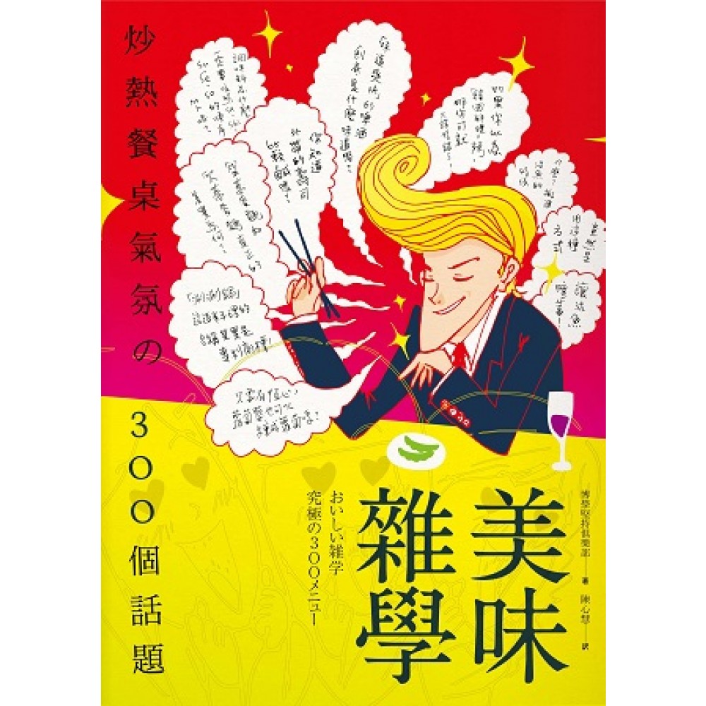 聊天還是談吃的最有趣! 肉、魚、甜點、飲料......分量滿點! 300個營養滿分的「食物」相關雜學,請慢慢享用! 與家族一起共進的晚餐、花大錢和情人一起共享的大餐、上司和下屬下班後小酌的居酒屋、與朋友談心的聚會……。 用餐的時光到底會變成愉快又美味的時間?還是無聊又平凡的時間?全仰仗一起用餐的人和一邊用餐一邊聊的話題。 這麼重要的時光,如果每個人只是各顧各的埋頭苦吃,那麼再美味的食物也頓時變得索然無味。但是,如果在每一道菜端上桌的時候都有一些與料理或食材相關的有趣話題,相信大家一定會發出驚訝的讚嘆聲,餐桌氣氛一熱,菜也會變得加倍美味。 本書提供了與每日料理或食材、用餐禮節和美味餐廳、酒與甜點等相關的「上等話題好料300則」。 當中包含了許多我們天天在吃,卻不知背後有這麼多有趣話題的食物,例如; 筆管義大利麵的醬汁中經常提到的「all arrabbiata」,為什麼會被翻譯為「愛生氣」? 蟹味噌的「味噌」到底指的是什麼?是指螃蟹的腦漿嗎? 「球芽甘藍」指的是甘藍的芽嗎?長大就會變成甘藍嗎? 「盛蕎麥麵」和「笊蕎麥麵」正式的差別在哪? 為什麼東日本的麻糬是四方形,而西日本的麻糬是圓形的呢? 「風呂大根」和「風呂」有什麼關係? 速食麵成分中的「抽取物」指的是什麼呢? 「味道爽快」的啤酒到底是什麼味道呢? 迴轉壽司為什麼每一家店都是順時鐘方向轉動呢? 白巧克力為什麼是白色的呢? XO醬的「XO」到底是什麼呢? 蟹味噌的「味噌」指的到底是什麼? 毛豆屬於豆類還是蔬菜類呢? 在戶外吃的BBQ為什麼特別好吃呢?