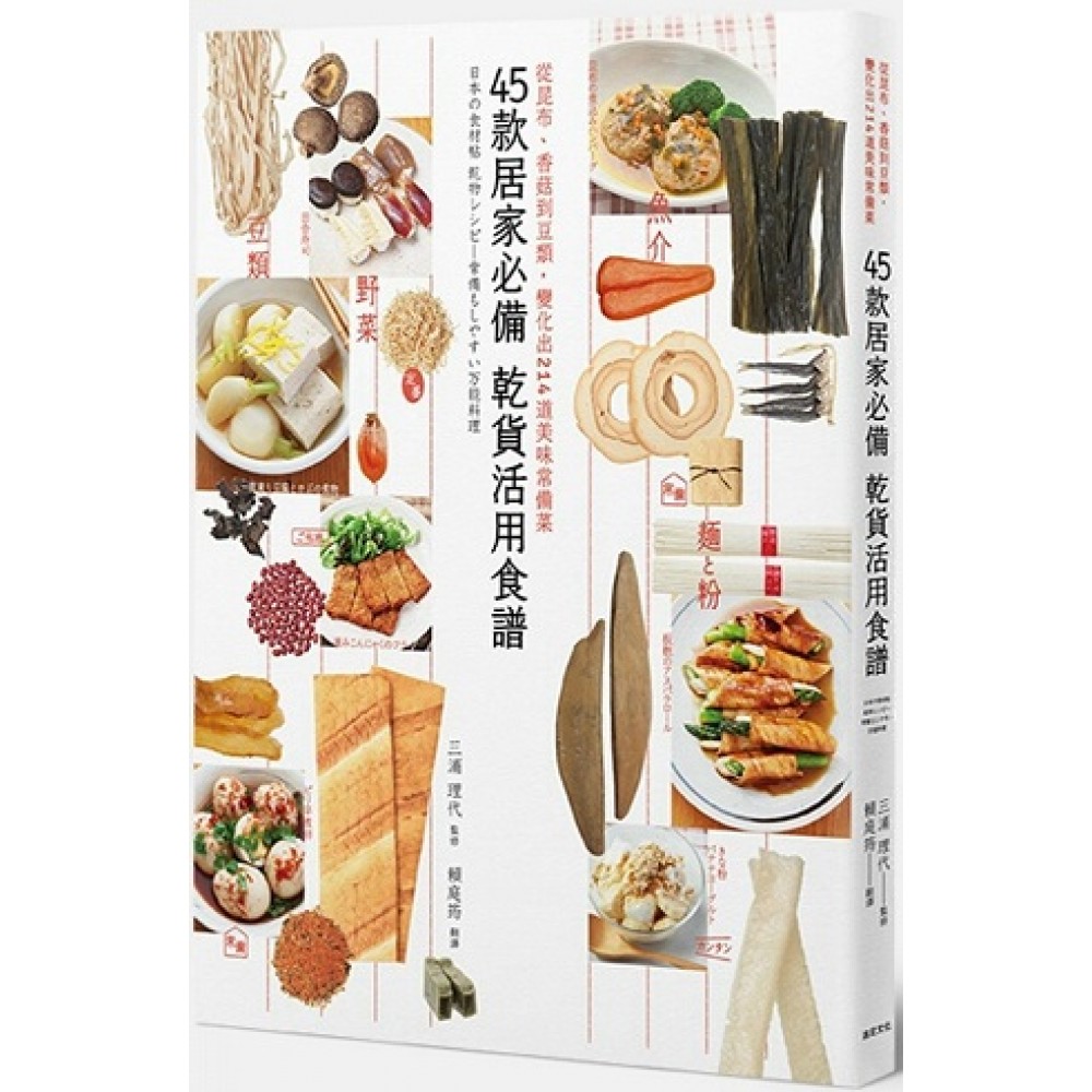 「乾貨料理 決定版」 便於儲存 完整濃縮豐富滋味 使用簡單 隨時都能享用山珍海味 精選居家常備的45種乾貨 按部就班 教你做出超過200道健康料理 日本擁有資源豐饒的自然環境, 自古以來就生產許多以山珍海味製作而成的乾貨。 這些都是在述說日本飲食文化時不可或缺的重要食材。 有段時間,乾貨登上餐桌的機會比較少。 近幾年,高保存性與令人懷念的味道使乾貨再次受到重視。 此外,乾貨的熱量很低、食物纖維很豐富, 對飲食不均衡的現代人來說,乾貨是非常有益、優異的食材。 這本書將介紹包括昆布、羊栖菜、蘿蔔乾等在台灣也能輕鬆購得的日本招牌乾貨,以及干貝、冬粉等中華或異國料理也會使用的乾貨, 並分享如何使用乾貨製作美味料理的各式食譜。 衷心希望各位讀者看了這本書能夠感受到乾貨的魅力, 並在每天的飲食中積極攝取乾貨料理。