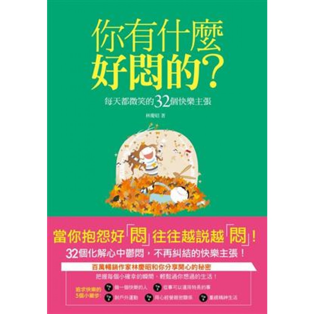 請你跟我這麼喊: 煩悶,走開! 把握每個小確幸的瞬間, 輕鬆過你想過的生活! 32個快樂過日子的主張, 為自己創造快樂的人生! 快樂的泉源就在我們心中, 開啟快樂的鑰匙也在自己手上, 有人苦多一些,有人快樂多一點, 只要認份地過自己的生活,歡歡喜喜地接受,再苦都可以甘之如飴。 鬱悶煩躁只會趕走快樂,使自己陷入極度痛苦中, 相反地,只要對任何事都不計較、樂觀開朗,日子就會在有趣中度過。 如果說良好的態度是我們最富有的資產, 那麼只要養成適可而止的生活態度,等於為自己創造了快樂的人生。 百萬暢銷作家林慶昭與你分享32個好心情的快樂主張, 想要擁有快樂的第一步,先了解是什麼讓你感到快樂。 一旦了解快樂的源頭,就可以學習創造快樂的經驗。 把快樂裝進口袋,把每一天都當成是新生的日子, 生活必然充滿樂趣,也不會因為日常小事不開心而糾結不已了。