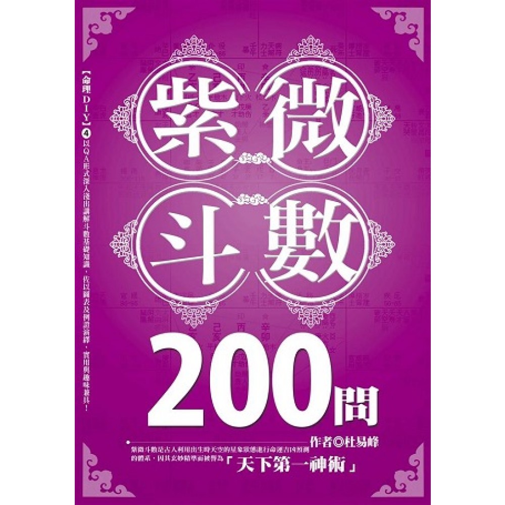 《紫微斗數200問》 以QA形式深入淺出講解斗數基礎知識,佐以圖表及例證演繹,實用與趣味兼具! ★紫微斗數是古人利用出生時天空的星象狀態進行命運吉凶預測的體系,因其玄妙精準而被譽為「天下第一神術」。 ★紫微斗數是流行且實用的個性分析理論,本書從最基本的紫微斗數學入手,詳細介紹了如何運用紫微斗數解讀每個人在人際關係、職場、家庭、財富及健康等重要議題的運勢,幫助人們全面掌握斗數知識,達到趨吉避凶、開運轉運的目的。