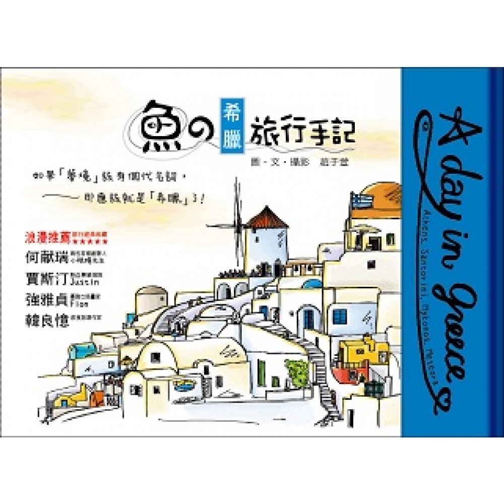「真正的希臘,是彩色的。 在聖托里尼島依亞風車下,或躺或坐,靜待日落, 乾爽清涼的海風吹拂,海水拍打岩石形成白色浪花, 身旁情人的絮語襯著遠方郵船的汽笛聲。 船隻在藍色海面上緩緩移動,白色小屋堆疊於層層山坡, 紅色的夕陽與藍色的海映照在白色的房子上,交錯成浪漫的黃,然後橘紅, 最後,整個世界變成無法言喻的美麗紫色……」 如果「夢境」該有個代名詞的話,應該就是希臘了! 因為,這是一個連風景都能醉人的地方! 為了實現創業的夢想,魚這次飛向「把全世界的藍都用光」的希臘,在神話色彩濃厚的雅典撫摸歷史痕跡,在恰似奶油巧克力蛋糕的聖托里尼島慵懶漫步,在猶如藍白天堂的米克諾斯島撞見美景,在天空之城梅堤歐拉感受神聖莊嚴。 透過精緻的照片、文字及手感繪圖,魚將帶你穿梭在希臘的巷弄之間、飄盪於愛琴海上,忙碌地用口鼻品嘗當地美食,努力地用雙眼觀察各式手工藝品,仔細地用心靈捕捉天堂景致,在買東西吃東西、買東西吃東西的過程裡,進行一場與眾不同的希臘之旅。