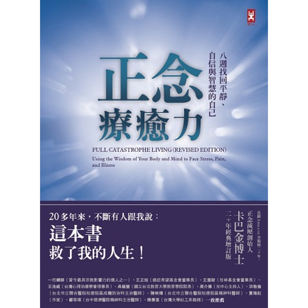 ●1990年出版,長踞Amazon分類榜超過20年的心靈聖經 正念減壓創始人卡巴金博士經典增訂版,全新上市● ★20多年來,不斷有人跟我說:這本書救了我的人生! 你有多久不曾單純地坐著、單純地呼吸、打從心底「真正的」微笑? 面對苦樂交融、悲喜交加的人生, 生活中每一件事都是「正念」的開端,也是自我療癒的開始。 「正念」不是要你正向思考,而是真實體驗當下的每一種感受, 重新找回平靜、自信與充滿智慧的自己。 ◎什麼人需要「正念」? ‧你剛開始修習「正念」卻一知半解,需要更多指引。 ‧你奉行享樂主義,認為每一天都要及時行樂。 ‧你長期與癌症、病痛、失眠或憂鬱纏鬥,感到身心俱疲。 ‧你習慣評價他人、批評自己,總以偏見識人。 ‧你認為人生像缺角拼圖般支離破碎,怎麼拼湊也不完整。 ‧你害怕獨處,非得塞滿行事曆,填滿每一天的空檔。 ‧你常吃飯聊著八卦、休息還想著工作,無法專注在眼前的事物。 ‧你終日為了生活奔波,卻不知道所為何來,感覺人生無望。 ‧生活壓力讓你喘不過氣,忘了感受自己真正的情緒,也學不會如何放鬆。 一九七九年,卡巴金博士於麻州大學醫學院創設正念減壓課程(MBSR)。三十多年來,正念減壓在內科醫學、精神醫學、心理學等領域發展,蔚為風潮。 數以千計的研究證實:MBSR可以廣泛地運用於:睡眠障礙、慢性疼痛、憂鬱症、過動與注意力缺失、癌症等。 一九九○年,本書首度問世,卡巴金博士引導讀者,如何練習擁抱苦樂交融的人生,正面迎接生活中的各種挑戰。近二十五年來,持續擴大的數位革命影響了我們的生活型態,在未來數十年,如何適應這一切變革所帶來的壓力,將是最重要的課題。 在此之際,本書推出全新增訂版,大幅更新正念的發展與研究,以順應當代需求。卡巴金博士同時邀請讀者:運用「正念」以妥善處理生活不斷拋給我們的難題。與其任由生命的風暴摧毀自己或奪走力量與希望,不如學習如何在這變動的、充滿痛苦的世界中生活、成長與療癒,並藉此強化自身的力量。 過去三十年來,包括史丹福大學附設醫院共三百多家醫院及機構開設MBSR。全球各地,已有數百萬名飽受痛苦的生命透過正念減壓課程,帶來希望與轉機。 ◎各種壓力來襲,給你的「正念減壓」建議: ‧時間的壓力。面對時間壓迫,如果你已經很緊繃了,那就完全停下來,問問自己:「這麼拚命值得嗎?」或是「是誰在忙?忙著去哪兒呢?」 ‧人的壓力。我們常覺得「應該」要這麼做,才是「好人」。幫助別人並非壓力的來源,而是你在幫助別人時,內心缺乏寧靜與和諧,這才是壓力源。自信訓練的第一堂課,就是領悟你的感覺就只是你的感覺! ‧工作的壓力。試著每工作一個小時就停個一分鐘,覺察自己的呼吸。運用這些迷你靜觀讓自己回到當下,運用這些小留白重新自我調節並歸零。 ‧飲食的壓力。在你把食物吃掉之前,問問自己是否真的想把它們放入身體裡。好好聆聽你的身體,當你的身體說「夠了」,你聽得到嗎? ‧混亂世界的壓力。試著實際投入你所在乎的議題,這會讓你覺得更有活力與參與感。去做些事情吧,即便看來「無足輕重」的事情,都能協助你感到自己是有影響力的。 ◎八週正念減壓課程,開始練習囉! ‧第一週與第二週──每週找一樣例行的活動練習 在日常生活中培育正念,如:刷牙、飲食、購物、處理電子郵件等。不論你做什麼,對當下正在進行的事情都能人在心在。 ‧第三週與第四週──每天覺察一件讓你愉悅的事 隨筆記下愉悅的經驗,當愉悅事件發生時,你是否有覺察到?當時浮現哪些想法與心理感受?寫下時,對你的意義是什麼? ‧第五週與第六週──正式練習一天靜坐、一天瑜伽 初期練習靜坐時,你可能會擔心不知該專注何處或到底自己做得「對不對」。在你發現自己閃神時,稍微觀察一下是什麼盤據心頭,然後溫和、輕柔地把注意力再帶回來而不苛責自己,那麼你就做對了。 ‧第七週──實驗各種正念練習的組合 運用靜坐、瑜伽與身體掃瞄,自行發展出一套每天四十五分鐘的練習。例如:三十分鐘的瑜伽後,靜坐十五分鐘,或是二十分鐘的靜坐接著練習瑜伽二十五分鐘。 ‧第八週──課程結束,卻是自行練習的開始 第八週將延續進入你的生命,新的開始更甚於結束。現在,你對三種正念的正式練習及行走靜觀有一定的熟悉度了,可以在很多地方發現它們的實用面。例如:當你感到疲憊卻還需要讓自己維持活力,或是你獨自在大自然中,周圍的美景與新鮮空氣,自動、自在地做些瑜伽動作。