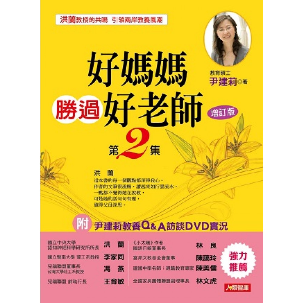 【推薦序】洪蘭教授 ˙ 陳美儒 ˙ 林良 【作者序】 【前言】寫給讀者 【第一篇】 教孩子的每件小事都是教育大事 第1章: 給小板凳揉揉疼 『要做個善良、豁達的父母』 第2章: 每年都來的聖誕老人 『要做個花心思、製造驚喜的父母』 第3章: 比黃金更珍貴的四個字 『要做個實事求是的父母』 第4章: 讓孩子不怕小動物 『要做個幫孩子克服恐懼的父母』 第5章: 長大要和馬曉飛結婚 『要做個端莊自在的父母』 【第二篇】影響孩子一生的品格教育 第1章: 只設記功簿,不設記過簿 『要做個善於獎勵的父母』 第2章: 像「牛頓」一樣 『要做個允許孩子嘗試錯誤的父母』 第3章: 如何學會開「家長會」 『要做個親師充分溝通的父母』 第4章: 幸福的家就是五星級飯店 『要做個讓家充滿愛的父母』 第5章: 孩子是從哪裡來的 『要做個擁有健康兩性觀的父母』 第6章: 睡覺不怕吵,學習不怕吵 『要做個引導孩子適應環境的父母』 【第三篇】讓孩子快樂的去上幼兒園 第1章: 入園前最重要的準備工作是什麼? 『要做個引領孩子認識幼兒園的父母』 第2章: 如何解决孩子和家長分離的焦慮? 『要做個舒緩孩子焦慮的父母』 第3章: 讓孩子顺利入園應注意哪些细節? 『要做個正面鼓勵孩子的父母』 第4章: 孩子為什麼不想去幼兒園? 『要做個了解孩子的心思的父母』 第5章: 理想的幼兒園老師應該是什麼樣? 『要做個能提供良好建議的父母』 第6章: 如何選擇適合你孩子的幼兒園? 『要做個注重教育科學的父母』 第7章: 孩子不上幼兒園,可不可以? 『要做個注重幼兒啟蒙教育的父母』 【第四篇】提升孩子學習興趣和能力 第1章: 讓孩子「識字」其實不難 『要做個施行正確教育方法的父母』 第2章: 用古典詩詞滋養的孩子 『要做個讓孩子愛古典詩詞的父母』 第3章: 學習不要太強調「刻苦」 『要做個讓孩子歡喜學習的父母』 第4章: 不考100分的心態 『要做個鼓舞孩子學習動機的父母』 第5章: 孩子考好了,不獎勵 『要做個不隨分數起舞的父母』 第6章: 扮家家酒就是學數學 『要做個懂得寓教於樂的父母』 第7章: 學語文,而不是學語文課本 『要做個重視語言教育的父母』 【第五篇】給孩子自由,就是給他選擇權 第1章: 自由,教育中的核心詞 『要做個給孩子自由的父母』 第2章: 給孩子自由,就是給他選擇權 『要做個讓孩子自在成長的父母』 第3章: 如何給孩子自由 『要做個學會放手的父母』 第4章: 給孩子自由,就是給他犯錯權 『要做個自律和寬容的父母』 第5章: 自由的人才會是自覺的人 『要做個懂得愛與自由的父母』
