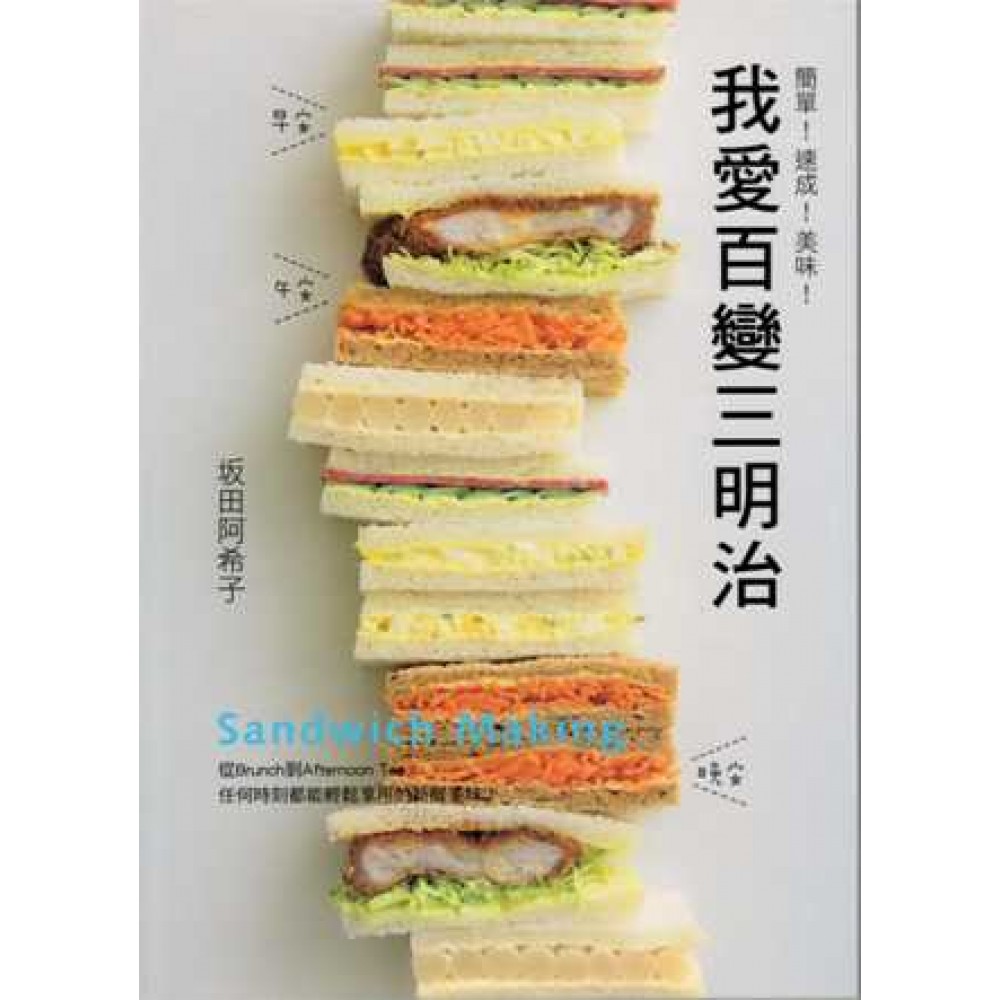 Sandwich Making從Brunch到Afternoon tea,任何時刻都能輕鬆享用的新鮮美味。簡單!速成!美味!吃慣了一成不變的三明治,是否想變化一下口味呢?收錄蛋沙拉三明治、雙層起司三明治、炸豬排三明治到漢堡、熱狗堡的經典款,和風鮪魚三明治、越式三明治、土耳其風味鯖魚三明治的外國風味三明治,以及水果總匯三明治、草莓煉乳麵包、栗子奶油三明治的甜點輕食。從輕食、主餐到甜點,種類豐富、簡單上手,輕鬆享受悠閒的幸福時光~除了豐富的食譜外,還介紹了其他美味關鍵技巧,教你各種麵包與材料的配對、沾醬的作法、材料的擺放順序以及最後的分切方式,讓你的三明治有別於一般市售三明治,精緻又美味!不妨從中找出你喜歡的口味,或是發揮創意,做出獨一無二的三明治吧!