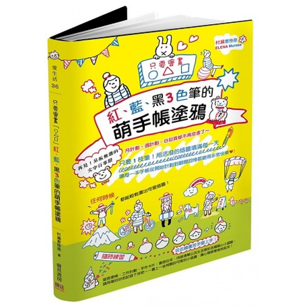 亞馬遜書店讀者好評: ★簡單易懂,掌握住訣竅後,想要和就讀小二的女兒一起畫可愛的插圖,做出很棒的手帳。 ★插畫圖案豐富,俏皮可愛,不擅長畫畫的我,也能跟著畫出來 ★只用3種顏色,就能畫出可愛插圖,從此就不會害怕手帳被看到了。 本書特色 ★只要1枝3色筆,隨時可以開始畫,讓手帳從開始計劃到翻閱回憶都變得非常快樂。 ★畫法簡單,只要會畫「○△□」,不會畫畫的人,輕鬆也能學會可愛插畫,從此繪畫苦手變上手! 新的一年即將到來,想買一本自己喜歡的手帳本,好好地記錄每一天,不管是心情、工作計劃、遊記、美食,都想記錄下來,讓手帳充滿生活溫度,變成精彩的故事本。 你常常有這種感覺嗎? ●打開手帳,有好多空白頁,總覺得少了什麼…… ●翻回去看,都是工作的事項,好無聊啊! ●想要更輕鬆地畫出可愛的插圖! ●最近感受不到生活的快樂…… 如果可以的話,我想要加入自己的塗鴉,用文字和插圖豐富版面,就像市面上的繪本一樣,自己的手帳就是獨一無二的專屬個性記事本,真讓人嚮往呀! 不過,我的手很拙,畫畫也很不擅長,我真的能夠畫出可愛的插圖嗎? 不用擔心,只要你會畫「○△□」,那麼只要準備1枝3色筆,用紅、藍、黑3種顏色,就能畫出生活中各式各樣的事情或是想要表達的心情,一點都不難喔!讓我們一起來完成自己的超萌手帳塗鴉本,每一天都有好心情!跟呆板無趣的文字行事曆揮手再見,月計劃、週計劃、日記頁都不再空虛了~