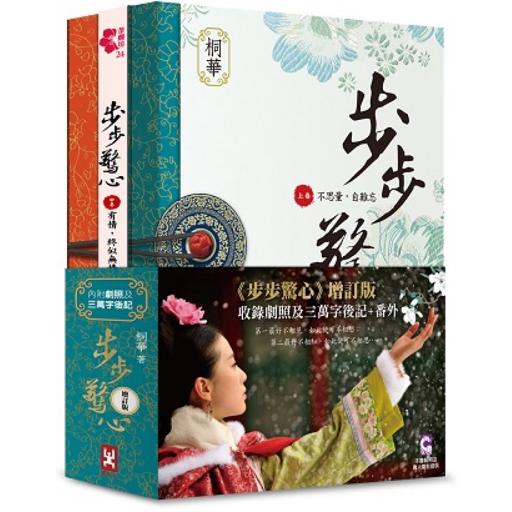 中國古典言情第一人 桐華經典深情大作 《步步驚心》增訂版! 內附劇照及三萬字後記+番外 第一最好不相見,如此便可不相戀; 第二最好不相知,如此便可不相思…… 二十一世紀,張曉於車禍中死亡,一縷芳魂輾轉來到清康熙四十三年, 成為了八貝勒胤禩側福晉之妹──馬爾泰‧若曦。 因地利之便,從小便認識了溫柔多情的八阿哥、聰穎俊朗的十四阿哥、憨直樂觀的十阿哥、冷峻肅顏的四阿哥和任情俠義的十三阿哥。 不由自主地被捲入這場「九子奪嫡」的殘酷戲碼。 在秀女選拔後,若曦成為御前奉茶的領頭女官, 見證了康熙大帝的權與術,也見證了帝王之家的翻臉無情。 有著二十多歲歷練的她,藏在這個十三歲滿族少女的心裡, 看著所有人的命運正朝著歷史的必然發展,卻摸不透自己該往何處去…… 也許自己的一點力量,可以換取一個「幸福」的微薄希望…… 人勸莫多情,一剪寒梅何處寄?若無愛與憎,皓月長空誰相伴? 由愛生嗔恨,離愛無癡念,卻有寸寸相思,日日盼君至。 【上卷】不思量,自難忘 【中卷】有情,終似無情 【下卷】往事,哪堪回首 ˙隨套書附《步步驚心》經典畫面劇照組 (1) [若曦跪罰+四爺雨中相伴] 4種尺寸:約52*38、26*19、13*9、中卷折口書籤7*21公分 (2) [若曦獨自賞雪] 4種尺寸:約52*38、26*19、13*9、下卷折口書籤7*21公分 (3) [若曦+八爺雪中散步] 3種尺寸:約26*19、13*9、上卷折口書籤7*21公分 (4) [若曦+雍正] 2種尺寸:約26*19、13*9公分 (5) [若曦+十四爺最後的賞花] 2種尺寸:約26*19、13*9公分 ˙[後記] 1篇:從另一角度紀錄雍正和若曦錯過最後一面的真相,以及其他阿哥的最終結局。 ˙[番外] 共5篇:藉由承歡之眼之口,一一訴說雍正、十三阿哥、敏敏格格夫婦、皇后烏喇那拉氏、十四爺對故人的思念與境遇。