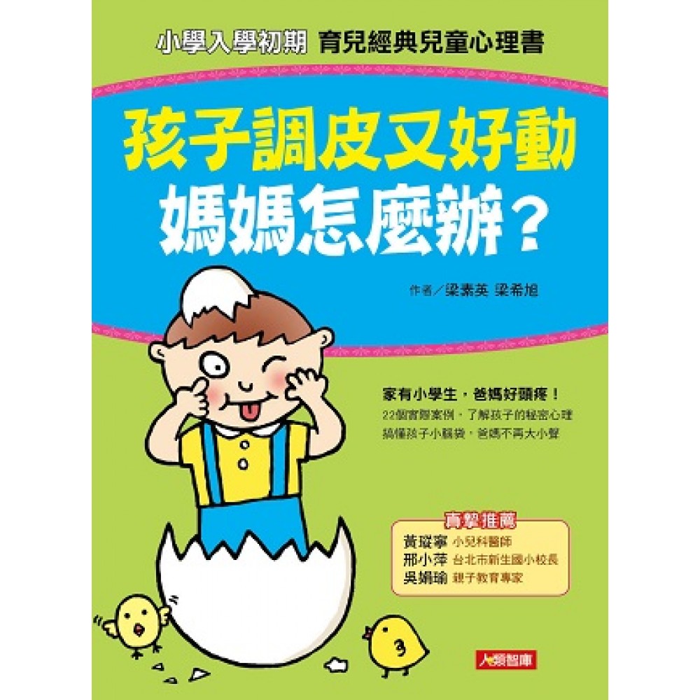 內容大綱 韓國著名兒童心理諮詢家梁素英,以22個實務案例,一般家庭經常出現的親子問題,從孩子社交、情緒、生理等各方面來分析孩子心理,帶領父母深入了解孩子的內心世界。 這雖然不是一本解讀孩子心理的百科全書,但抓住孩子從家庭到入學,生活環境和心理變化過程可能出現的問題之中心關鍵,簡單一本就讓父母了解孩子的心理變化。每個孩子都是獨特的個體,真正了解孩子才能從根本上解決問題,讓父母更輕鬆,孩子更快樂。 22個常見問題實例 解析孩子心理 每個有小學生家庭的常見場景,形形色色令人頭痛、百思不得其解的孩子行為,帶領爸媽從頭理解小寶貝心理,給予相應的解釋與解決之道。 從「保護型父母」到「園丁型父母」 「給他魚吃,不如教他釣魚」,教父母如何從100%的保護者腳色,轉為正確教導孩子做事的方法,慢慢放手,讓孩子獨立成熟。 這樣做 零吼叫養出好小孩 從父母心態的調整,到小孩心理的變化,父母懂點兒童心理學,了解成人與兒童間常見的想法差異,換個角度思考,知彼知己,面對孩子莫名舉動不再驚慌失措,親子關係更親密!