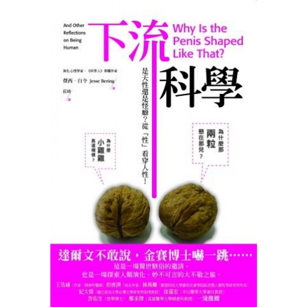自序:驚世駭俗的邀請 就記憶所及,我總是對某些「不得體」的事物滿心好奇,而且口沒遮攔,直言無諱。我察覺到自己最熱切提出的問題總是教其他人悄悄地腳底抹油,奪門而逃。你或許會說,我的分析也未免露骨到不堪入耳了吧!我記得在值得大書特書的某一天,曾經問我六年級班上的鄰座女同學一個教她張口結舌、花容失色的問題:「我的老二勃起的時候,形狀像彎刀,而不是短劍,這樣子豈不是很奇怪嗎?表示我一定是畸形,」我附耳過去向她坦白:「因為如果要和像妳這樣的女生性交,老二一定要直直的才行,不能像我的這樣,呈四十五度角。」經過幾次教訓之後,我終於學會閉上嘴巴。只是淫穢的心靈一經擾動,就很難平息。 在十分緩慢地學習我所亟需的社交技巧之時,我也發現自己越來越為科學世界所吸引,在這個領域中,沒有任何事物是神聖不可侵犯,沒有任何問題是荒謬或離譜到不能提出(就算在倫理道德上不能在實驗室中實驗,至少也能討論),而且我也找到了許多志同道合的同好,在我問出如肛交時喜愛作受方的人是否和覺得此法極不舒適的人有不同的肛門/生殖器生理配置的問題時,不會和我大眼瞪小眼。附帶一提,這個問題我到現在還不知道答案。 談到這裡,恐怕我還得順便說明(雖然由我花許多篇幅來描繪男性生殖器,各位應該已經可以明顯看出),有一件在我年輕時無從表達但對我舉足輕重的事,無疑塑造了日後我對世界的看法:我是同志,而且老實說,是徹徹底底的同志。在我還是青春少年兄時,就已經用了無數方法作實驗,確定了這不容爭辯的事實,包括摸索和親吻毫不知情的「女朋友」,雖然她們客觀上長得如花似玉,個性也千嬌百媚溫婉可人,但我對她們坐懷不亂,看她們就像看一塊生著閃亮白牙、灑了香水的火腿一樣。這完全不是青春少男對純純的愛心生緊張之故,我可以向你保證,女生只會教我的老二呆若木雞,而如果對方是男生,即使他們人在遠方,都會使小弟弟以我先前提到那古怪的四十五度角昂然挺立。 因此,讓我打開天窗說亮話:我寫作的角度是無神論、同性戀、心理學者,並且傾向遼闊的演化理論。雖然我不打算掩飾我個人的信念,我對政治卻沒什麼興趣。我所要求的只是在你還沒有讀幾篇文章前,先不要驟下定論,只要放輕鬆,鬆開自己的褲子,而且盡量讓自己舒適一點。或許來一杯白酒來放鬆自己。然後思考一下。我希望能夠讓最後一部讀起來輕鬆容易。我希望你能夠享受這個探索的過程,對自己到處亂射精的老二、春水蕩漾的陰戶,和你的恐懼、偏見、癖好和欲望有所瞭解。雖然我們各有差異,而且世人原本就處處不同,但我們全都有一個共同點:我們是人類。 我無意為聳人聽聞而聳人聽聞,但許多最吸引我的問題卻在定義上就非常聳人聽聞。然而若你能細細研究,就會發現這些最引人入勝的問題其實卻能挑起更深入的哲思,讓更多實質的問題浮上表面。比如在讀到對動物的愛戀之時,你可能會像我一樣質疑自己在道德方面下意識的性排斥;鑽研恥毛或青春痘的演化時,出人意表地揭露了我們與其他猿類的關係;自慰的幻想顯示出我們在動物王國之所以獨特的原因;戀足癖則暴露了我們成年時的性興奮其實常是源於幼時天真無邪經驗的永久結果。 不論探討的是女性在性高潮射出的水狀物體、六個月大的嬰兒意想不到地長出恥毛,或者女人受男同志吸引的心理,我都確實以做個好的科學家為第一要務。由於書中許多文章最初都是以某種形式發表於我在《科學人》(Scientific American)和《石板》(Slate)雜誌上的專欄,因此只概述了各個主題中最有趣的層面,我當然不可能涵蓋每一個課題每一個層面的正反觀點,不過我鼓勵你深入鑽研你有興趣的主題,協助你繼續探索。 是故,請加入我的驚世駭俗。我們不要參與諱莫如深的那一派,不然這世界會多麼索然無味。我請你跟隨我來一場科學發現之旅,你大可隨心所欲挑你喜歡的篇章閱讀,也可不按順序跳讀文章,各篇文章並不相關,各自獨立,只是你要小心腳步:因為這條路很滑溜,而且請注意,雖然文章的語氣大半輕快,卻並不全是歡樂的玩笑。我納入本書中的一些文章其實是非常嚴肅沉重的──包括對自殺者心態非常仔細的探索。我是因為近年來有許多青少年同性戀者自戕,而撰寫那篇文章,結果該說很遺憾地,獲得許多讀者的迴響,有些讀者在偶然讀到這篇文章之後,很有勇氣地和我分享了他們個人的經驗。 本書共分八部,各自代表一個主題或範圍,列出身為人類驚人的奇特樣本。第一部「用達爾文的學說來解釋」包括了你原先所不知但一直想探索的男性生殖器解剖結構;第二部「豐富的身體」則討論大自然怎麼設計我們吃掉對方,為什麼我們是唯一為青春痘所苦的猿類,以及其他看似平凡的身體部位不為人知的小祕密;接下來在第三部「滿腦子的齷齪心思」中,我們要討論非常淫穢的大腦科學,在過程中把我們的常識運用到一些教人不自在的角落。而這也讓我們準備好面對第四部「奇特的床上伴侶」,在這裡我們要以審慎而不帶批判的眼光,來看一些有趣的性倒錯、癖好,和制約,探索它們發展的起源、理論,和有關臨床診斷的辯論。要是你認為和動物發生性關係是大逆不道的行為,或者性發育是始於青春期頭一次荷爾蒙旺盛分泌之時,那麼讀完這一部時,你可能會意想不到的改變看法。 在第五部「女