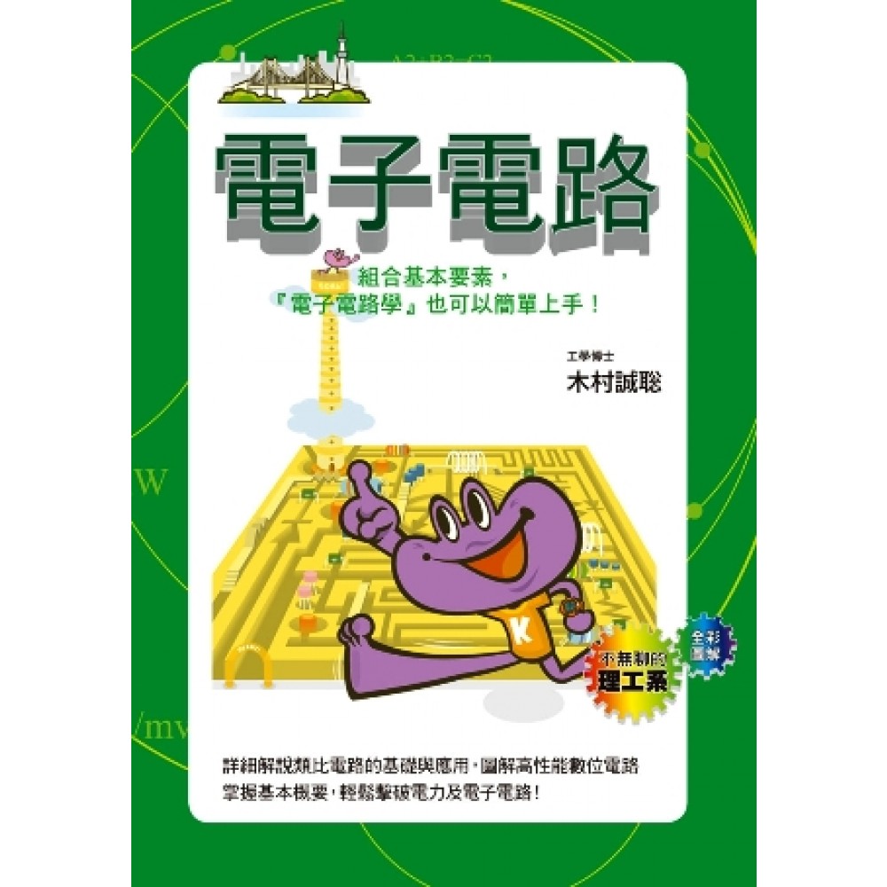 一、電子電路的基礎知識 001 組成物質的原子核與電子 沿著軌道繞行的電子 002 可自由移動的電子與能帶的有無,決定物質是「導體」還是「絕緣體」 003 自由電子一同流動,就是「電流」 004 水位差是電流的動力 電壓 005 控制電的流動 電阻與歐姆定律 006 利用化學反應產生電力的架構 電池 007 表示電流與電壓的關係 克希何夫定律 008 輸出穩定與輸出會改變的電流 直流電與交流電 009 訊號的位置關係 相位 010 電在任一時間內所作的工作 功率 011 隨頻率改變的電阻值 阻抗 012 阻抗的計算 複數 013 儲存電荷 電容與電容量 014 磁能的儲存 線圈與電感 015 五花八門的電阻器 從大型電阻到晶片電阻 016 儲存電荷,導通交流電的元件 電容 COLUMN 「連接器」,電子電路的配角 二、電子電路與半導體 017 驅動元件和有放大作用的元件 被動元件與主動元件 018 只要給予能量,電子就會移動 半導體 019 電子移動所造成的孔洞 電洞(Hole) 020 添加雜質的半導體 n型半導體與p型半導體 021 組合n型半導體與p型半導體 二極體 022 發光的半導體元件 發光二極體(LED) 023 感應光線或磁場的半導體 影像感測器、霍爾元件 COLUMN 電晶體是發現?還是發明? 三、類比電子電路的基礎知識 024 放大與測量單位 分貝(dB) 025 利用CL組合改變電阻值 諧振電路 026 電子與電洞互相扶持,攜手控制電源 雙極電晶體 027 主角是電子還是電洞,名稱大不同 npn接面與pnp接面 028 電晶體的基本電路 射極接地電路 029 電晶體與負載的關係 負載線 030 讓電晶體動作的點 工作點 031 表示電流增益的參數 hfe 032 放大功率的基本電路 A類放大器 033 放大效率高的放大器電路 B類與C類放大器電路 034 失真小、輸出大的放大器電路 推挽式放大器電路 035 讓放大訊號返回輸入 回授電路 036 可用電壓控制電流的元件 場效電晶體(FET) 037 FET基本電路 038 n型FET與p型FET的組合 CMOS 039 優良的半導體,矽材 矽晶圓 040 在矽晶圓上形成電晶體 平面技術 041 在矽晶圓上形成電阻與電容 平面技術的應用 COLUMN 電路與電子電路有什麼不同? 四、類比電子電路 042 將強大電流吸入電晶體 電流槽電路 043 從電晶體輸出強大電流 電流源電路 044 可以輸出與輸入相同的電流值 電流鏡電路 045 會做運算的放大器 OP AMP 046 輸出反向訊號 反相放大器 047 輸出同向訊號 非反相放大器 048 數個輸入訊號的加法運算 加法電路 049 兩個輸入訊號的減法運算 減法電路 050 表示訊號的變化率 微分電路 051 一段時間的訊號累積 積分電路 052 濾除不要的波 濾波電路 053 用來傳輸數道訊號的轉換方式 調變 054 恆常輸出固定頻率的訊號 振盪電路 055 輸出隨著輸入訊號改變的頻率 PLL電路 056 將類比訊號轉換為數位資訊 類比數位轉換 057 將數位資訊轉換為類比訊號 數位類比轉換 058 將高壓交流電轉為低壓直流電 AC-DC電源轉換電路 059 將高壓直流電轉成低壓直流電 DC-DC電源轉換電路 COLUMN OP AMP的發明 五、數位電子電路 060 憑0與1動作的電子電路 二進制與數位電路 061 用數位電路表示負數 補數 062 表示A且B的電路 及閘(AND) 063 表示A或B的電路 或閘(OR) 064 表示否定的電路 反閘(NOT) 065 電腦裡的基本運算器 半加器 066 考慮前級進位的運算器 全加器 067 電腦的基本存儲電路 正反器 068 儲存狀態的記憶體 069 由已儲存的內部狀態與輸入來決定輸出 循序邏輯電路 070 利用程式實現數位電路 硬體描述語言 071 利用脈波產生交流電 變頻器電路 072 運用數位技術的功率放大電路 D類放大電 COLUMN 電磁干擾與相關規範