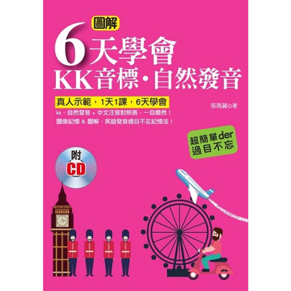 真人示範,1天1課,6天學會 KK音標‧自然發音 + 中文注音對照表,一目瞭然! 圖像記憶 & 圖解,英語發音過目不忘記憶法! 學好KK音標‧自然發音的 3 個步驟 ․ Step 1圖像記憶,一看就會 KK音標․自然發音․中文注音對照表 ․Step 2 真人發音示範 幫助您抓住每個音標的正確發音位置 ․Step 3 圖解發音部位和口型 正確發音的第一步,全方位打好英語發音基礎 全國首創,K.K.音標&自然發音和中文注音符號結合在一起,就可完全掌握美語的發音技巧! 所有K.K.音標和自然發音做整合教學,學習者只要配合書裡的說明,就能立即搞懂41個K.K.音標和自然發音的區別與發音方式。每個K.K.音標搭配生動活潑的插圖和清楚易懂的發音對照表,讓你一看就記住! 美籍老師慢速、反覆、漸進的教學方式,可使你的美語發音成為直覺反應。看到字就會唸,聽到音就會拼! 複誦教學讓你用直覺發音。