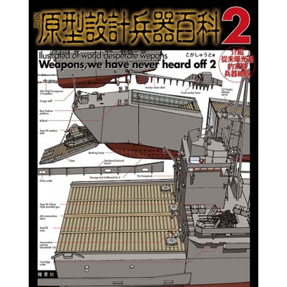 日本Amazon讀者4.5顆星好評! 本書為作者Kogasyuto因為對各種類型武器的熱愛與喜好,特別為雜誌專題所做的介紹,屏除傳統同類型書籍的死板介紹,而是以隨興的語句、搭配淺顯易懂的漫畫插圖,談論機體的外觀。本書分別介紹陸海空三大類型、共13種從未曝光過的末期兵器。 戰機紫電一一甲型:當時的飛行員都暱稱紫電系為「J」,配裝了兩挺吊下式內側20mm機槍炮,相較於保守的中島系戰機,紫電系結合許多最新科技的規畫設計,具有極佳的空戰性能。 巡洋潛水艦乙型:具有六門艦首魚雷發射管,其後改良型,撃沈美軍航空母艦黃蜂號及驅逐艦奧布萊恩號,立下不朽的戰績。 八九式中戰車:簡稱「I號」,是日本首量國產戰車,作者由於對此戰車的熱愛,因此在書中詳述其炮塔、腳部、車體前方、車體上與尾體等五大部份。 本書以詳盡的資料與大量各角度的機體圖繪,以空海陸三部份的分類,將這些在歷史戰事中被埋沒的兵器先驅,由紙上再度活躍於百年後的現代,死忠與新入的軍事迷們,不可錯過的系列好書。