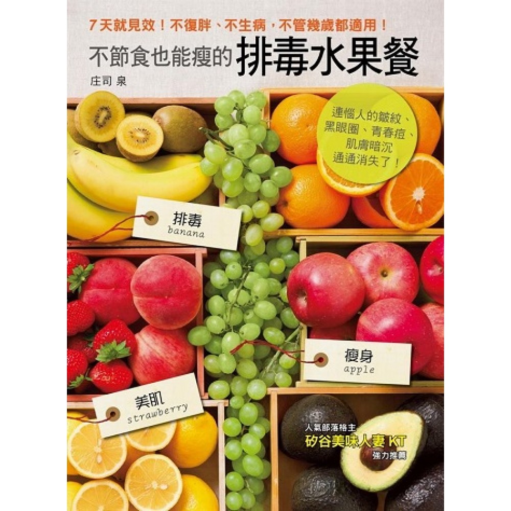 前言 人人都愛吃酸甜又多汁的水果。 「但是吃太多好像會變胖。」也有人因此產生疑慮而不敢多吃,這是很大的誤解。 其實,水果可以有效排出體內的多餘廢物。 水果含有豐富的膳食纖維成分,可以徹底清除囤積在體內的廢物,鉀成分則幫助排除體內多餘的水分,還有很多水果含有維生素B群等能提高熱量代謝的營養素,能幫助打造易瘦的體質。 沒錯!水果具有優秀的排毒效果。水果不僅能排除體內廢物,還具有讓人變得更加美麗的營養成分。 水果是維生素C的寶庫,維生素C可幫助膠原蛋白的生成,並抑制黑色素,打造美白的肌膚,還有抗氧化作用能防止老化等,對女性而言是不可或缺的營養素。 此外,水果還含有β-胡蘿蔔素與維生素E,能守護我們的肌膚。大量的多酚則能產生抗氧化作用,維持年輕的肌膚與身體機能。水果與蔬菜不同,可以直接生吃,因此食用時不用擔心營養素會因加熱而流失。 多吃水果能幫助排除體內廢物,並打造水嫩白皙的肌膚,可說是女性的最佳夥伴。只要多加攝取水果,妳就能變得更加健康美麗! 庄司泉 推薦序 我很喜歡以水果入菜,在我的食譜書和部落格中,也曾收錄過「蘋果美容雞湯」、「鳳梨紅燒肉」等別具特色的食譜。不管是湯品、鹹食、甜點,水果天然迷人的甜味香氣都使菜餚多了些風雅細緻之味,並創造出許多驚喜的味道。水果寶貴的營養價值,亦能養顏美容並有益健康。 大樹林出版社的《不節食也能瘦的排毒水果餐》是一本特別的料理書,兼具營養、創意及實用的瘦身美容健康書。「多吃水果讓妳變得更加美麗」是這本書的重要理念。水果含有豐富的膳食纖維可以有效清除體內的多餘廢物,還有許多使人變得更美麗的營養成分,如維生素C、E、胡蘿蔔素。多吃水果能常保年輕及保養肌膚。本書作者提到的一些重要觀念,這讓熱愛水果入菜的我,激起更多認同感,覺得每吃一口水果就是天然的美容保健方式,健康又環保。 本書作者對於每種水果的營養價值、維生素、膳食纖維、熱量皆有詳細標示,並仔細解釋水果對於人體的健康、肌膚和瘦身的影響。還有水果的種類介紹、保存方法及料理切法亦詳盡描述。 本書分成三章節<排毒水果事典>、<依各種煩惱所設計的水果食譜>、<排毒水果瘦身指南>。我尤其喜歡<依各種設計煩惱所設計的水果食譜>這個章節,作者利用水果的營養療效進而改善許多常見的女性煩惱,如皮膚乾燥、黑斑、美白等各種問題。而<排毒水果瘦身指南>則以水果入菜作為瘦身菜單,以及利用六日重整體質的排毒水果特製全餐,教導正確的瘦身概念,以進行均衡健康的瘦身計劃。 如蘋果,本書列出了主要營養成分是鉀和膳食纖維,每100g中含1.5g膳食纖維、110mg鉀,和54kcal熱量。除此之外,還細心的寫出盛產季節爲每年10-12月以及蘋果的保存方法。書中對於蘋果的描述:「蘋果含有大量水溶性膳食纖維的果膠,可排除腸胃的廢物。蘋果還含有鉀成分,能幫助排除體內多餘的水分,是排毒水果的代表。還有蘋果含有豐富的多酚,白色果實部分含有槲皮素,屬於類黃酮的一種;紅色果皮則含有花青素,具備強大的抗氧化能力。蘋果的維生素C與礦物質也相當均衡豐富,是具美肌功效十足的水果」 還有,作者細心整理各種類蘋果的照片和特色,使讀者一目瞭然各種類蘋果的特色香氣和口感,還有以蘋果入菜的方法,這也是讓我覺得非常實用的地方,因為除了營養價值之外,如何選擇好吃的蘋果以及保存方法,能讓人妻主婦們在生活中無形增長了許多智慧知識。 書中亦有許多養顏美容的水果創意食譜,如有美白功效的「西印度櫻桃香辣茄汁筆管」,還有消水腫的「哈密瓜酪梨濃湯」,打造健康亮麗秀髮的「芒果桃子豆漿奶昔」…等,每道食譜都是創意十足,強調樂活健康且簡單易作,是忙碌主婦人妻和上班族們的健康寶典和漂亮祕笈。 對於追求健康又愛美的人來說,我想這是一本值得收藏的優質健康料理書,可以養顏美容,亦可以吸收料理知識,就讓我們一起吃水果變漂亮吧!! 美味人妻 KT 筆 推薦者簡介 美味人妻KT 謝凱婷 熱愛研究手作料理的料理研究家、食譜作家和食物攝影師,身為人妻的同時也是兩個可愛女兒的媽咪。 成大工學院畢業,美國MBA學位,曾任公關、產品經理及網路公司總經理,對於飲食生活及營造餐桌氛圍很有個人想法及美感,擅長中、日、西式料理,以及簡單快速的美味創意料理,其個人部落格曾創下一天創下10萬人次點閱的紀錄。著有《矽谷美味人妻10分鐘幸福廚房:五步驟不失敗料理全圖解x 200個省時快速烹調技》。