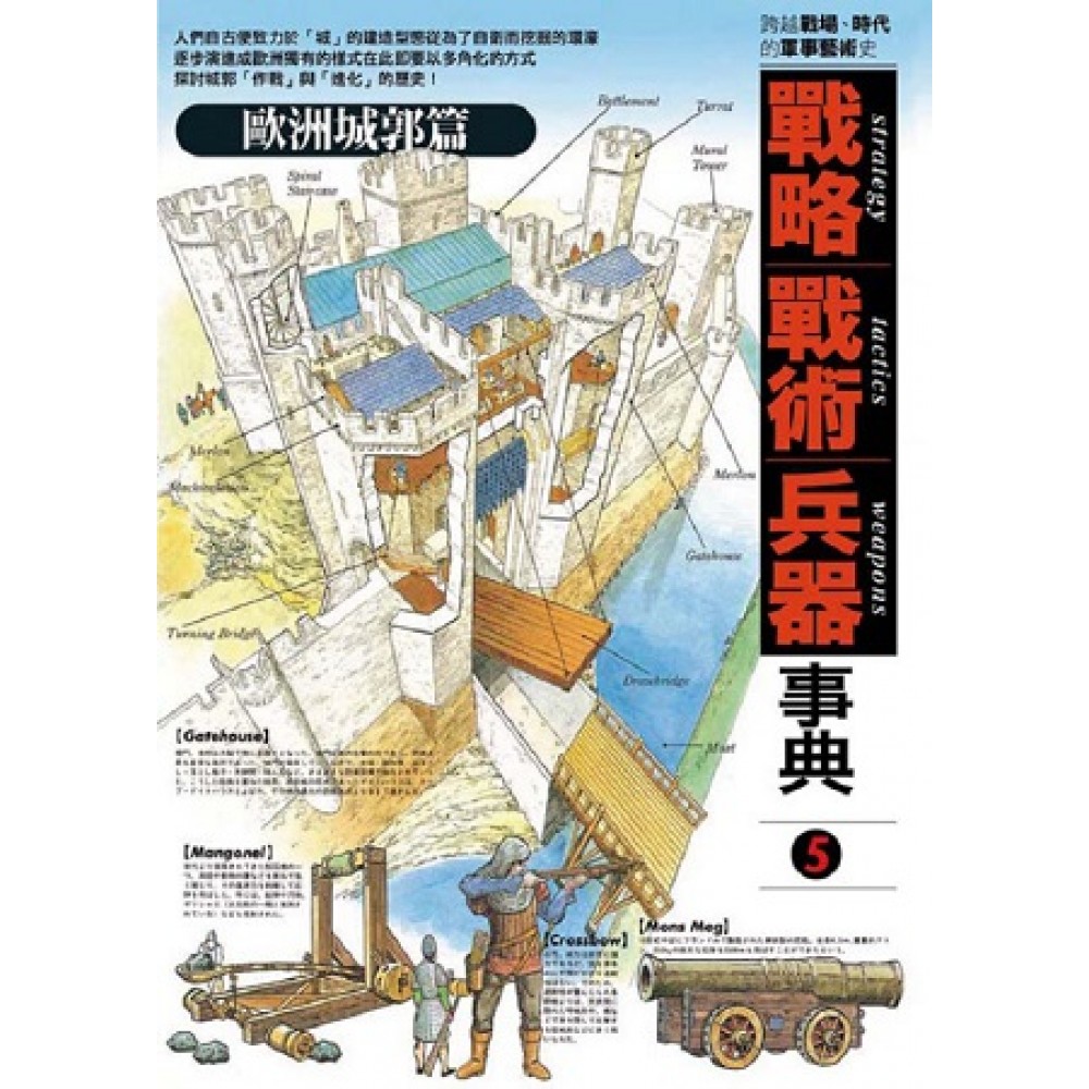 ★ 日本亞馬遜網站讀者五顆星評價! 自中世紀佇立至今的壯麗古堡 以鮮血與誓言交換的歷史見證 如果你嚮往中世紀、騎士精神,熱愛歐洲中古時期軍事文化, 那麼你千萬不能錯過──【戰略˙戰術˙兵器事典】系列第5集 從堡壘防禦原則到築城構思,完整呈現! 我們現在常見的歐洲古堡,主要是延襲古羅馬的築城技術,自9世紀在歐洲各地開始發展,原本是以防衛為目的的軍事性防禦設施,到中後期才開始轉變為行政中樞,和王權的鞏固產生比較密切的關聯。 人類早期文明的築城多是以簡單的壕溝與壁壘為主,隨著時代的演進,地域、科技、民族……的不同,而產生了不同的戰術與戰略,城堡的形式也因此受到影響。例如築城史上最大的革命,莫過於來自於15世紀中葉出現的攻城砲,它使整個歐洲中世紀以降的城堡從原本單純的防守性質,轉型為戰略要塞。 本書以專題型式,解構歐洲中世紀至今的著名城堡。首章帶領讀者看的是以防禦性較強的建築,包括雙重城牆的倫敦塔、以連續多角形塔構成的卡那封城;第二章開始進入城堡的內涵,包括築城發展史、變革歷程,以及攻防戰的相剋與相生,最後更深入探討幾場知名的攻城戰役及其影響力。全書內容豐富且專業,絕對是喜愛閱覽戰爭史的你必備的資訊書!