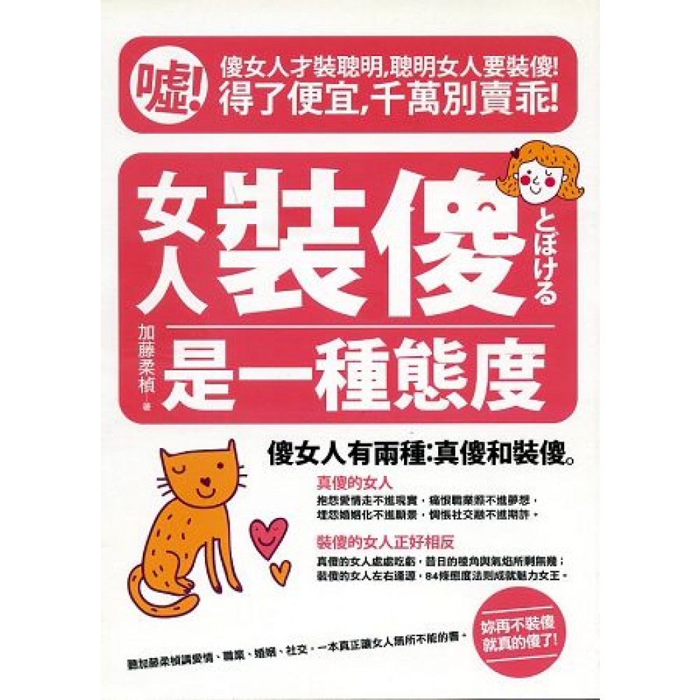 傻女人才裝聰明,聰明女人要裝傻! 噓!得了便宜,千萬別賣乖! 傻女人有兩種:真傻和裝傻。 真傻的女人——抱怨愛情走不進現實,痛恨職業照不進夢想, 埋怨婚姻化不進願景,惆悵社交融不進期許。 裝傻的女人——正好相反。 真傻的女人處處吃虧,昔日的棱角與氣焰所剩無幾; 裝傻的女人左右逢源,84條態度法則成就【魅力女王】 。 聽加藤柔楨講愛情、職業、婚姻、社交,一本真正讓女人無所不能的書:妳再不裝傻就真的傻了! 純真可愛的“傻”女人,讓男人喜歡; 善解人意的“傻”女人,讓男人和女人喜歡; 氣量寬容的“傻”女人,讓男人、女人和上帝都喜歡! 對待愛情——女人跟男人相處的時候傻一點會顯得可愛,可看待男人平時的表現則要分外精明。 對待婚姻——妳永遠無法成為婆婆的女兒,但是不妨用女兒裝傻撒嬌的手段對付婆婆,甚至必要時“傻傻地”把功勞推給婆婆,這不是皆大歡喜麼? 對待工作——控制情緒是一種能力,學不會的才是傻瓜。 對待社交——女人一定要知識淵博,在人前,說一半藏一半,才能成為最受歡迎的社交女王。