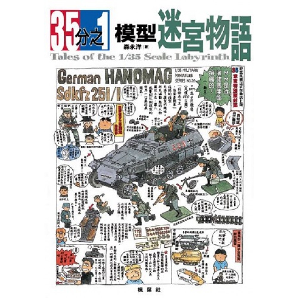 本書是以田宮生產的35分之1比例的靜態戰車模型『MILITARY MINIATURE SERIES(軍事縮尺模型系列)』、俗稱「MM系列」為主題,從1998年7月號起開始在『月刊Model Graphix』雜誌上推出「35分之1比例的迷宮物語」連載單元,作為「MM系列」誕生30週年的紀念企畫,之後集結成冊,推出『35分之1比例的迷宮物語』單行本。 最初連載時,是以森永洋先生和編輯的兒時回憶作為主題,但是隨著連載單元推出,不僅影響到我們和模型產業內外,連帶刺激到了現在40多歲的“MM世代”的心靈,使得連載朝向更深入的方向前進,探討戰車模型世界的種種趣事。 因為雜誌連載而一躍成為模型媒體聞人的森永洋先生,發現到自己本來是「胸懷著戰車之愛的人」,身處在戰車和模型的泥沼中,持續的挖掘自己的過去。 森永洋先生藉由他溫暖濃厚的筆觸,構築起這個圍繞著戰車模型、充滿傳說和體驗的迷宮,您想不想進入這個迷宮一探究竟呢?