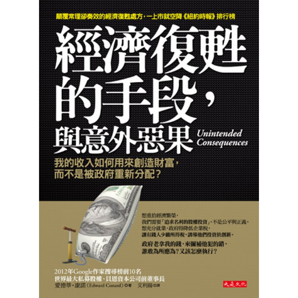 哪些立意良善的經濟政策,害你我薪資停滯、財富縮水? 想重拾經濟繁榮,我們需要「追求名利的股權投資」,不是公平與正義。 公平正義的最大受害者,是中產階級,但窮人也沒佔到好處。 想充分就業,得降低企業稅,讓有錢人少繳所得稅,誘導他們投資於創新。 政府老拿我的錢,來彌補他犯的錯,誰敢為所應為?又該怎麼執行? 世界最大私募股權、貝恩資本公司前總經理愛德華.康諾,要給你一個最直率又有效的解決方案。他舌戰諾貝爾經濟學獎得主史提格里茲(《失控的未來》作者)與前白宮經濟顧問委員會主席古斯比,讓末日博士魯比尼、《蘋果橘子經濟學》作者史帝芬.李維特都折服。 本書一上市立即空降《紐約時報》、亞馬遜商業類排行榜,美國《商業週刊》、《彭博商業週刊》、《華爾街日報》、《出版人週刊》、政論雜誌《新共和》……爭相報導。 經濟怎樣才會復甦?以前奏效的振興方案,像是—— .印鈔票,溫和通膨 .政府選定重點產業參與投資,以及加大公共建設 .阻止製造業外移 .貨幣貶值、維持出口競爭力以提高就業率 .刺激民間消費,政府用人為力量拉抬景氣…… 現在不但行不通,反而造成意外惡果,為什麼? 政府的哪些經濟政策其實是錯的? 想保住財富,你能看出經濟局勢的隱憂嗎? .「金融危機,可能還會發生」:美國的金融危機,竟然是追求外匯存底的貿易順差國所引爆的,而且所有造成危機的兇手都沒被檢討出來。 .銀行給房貸戶的寬限期、低自備款、可二胎,對於經濟造成哪些隱憂? .房貸佔GDP多少比率,房價就有大跌危機? .說「政府會破產」「債留子孫」,都不是事實,財政赤字的迫切危機是什麼?真正害子孫變窮的不是債務,而是政府誘導的消費。 .對奢侈品課以重稅,以證所稅、個人所得稅累進來擴大稅收,以財富重分配的手段來建立「公平正義」社會,有什麼嚴重後果? .健保浪費大量資源,用富人的錢來支撐健保,窮人就只能繼續煎漢堡。 過去的方法行不通、有隱憂,那,到底該怎麼辦,經濟才會重回繁榮?作者以綜觀全球局勢的分析方式,提出「可行,而且對手會尊敬的挑釁答案」—— 一、所得重分配?萬萬使不得。政府應該誘導有錢人去做些事…… .所得重分配的公平正義,是道德辦法,不是經濟對策。 .所得重分配,受重傷的是中產階級。作者以數據證明,中產階級要付出六元,才能重分配得到四元。 .對富人加稅,只會阻礙投資意願。能幫助窮人的是投資,不是慈善捐款。 正確的方法是:政府應該將有錢人的錢,引導進入股權投資市場,讓有錢人承擔風險、但也有機會享受成果,這樣真正獲益的是消費者與受薪階級。 二、避免另一次金融危機 金融危機的原因在於房價暴跌三成,導致大量外資的恐慌性撤退,如果國會立法者仍堅持可二胎、可寬限期、可低頭款,那麼房市就有泡沫隱憂與消費者依舊二胎透支。因此,政府必須向銀行收保費,加強擔保流動資產。 三、盡快降低失業率 .政府加強擔保短期債務,以鼓勵閒置的短期資金投資。 .別死守製造業,要利用上市、租稅的優惠,鼓勵「真正的創新者」能創業致富。 .臨時客工計畫,就是讓外勞只能做臨時工,期滿立刻遣返。 .限制貿易,迫使消費者多買本國產品,可以提高就業率。 復甦經濟的手段,往往摻雜了道德因素和利益團體的介入,加上不盡責的公務員(監管機構以及執政者),誤信了不再適用的經濟學理論,或是見樹不見林的經濟分析,導致善意得到的是惡果。作者康諾以個人投資和經營企業多年的經驗,提出最直率的解決方案,一如他經營的私募股權公司——快速成長、簡捷有效。