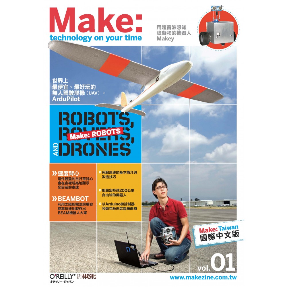令人驚喜的機器人 可別誤會我 ─ 我跟隔壁這位一樣,喜歡看到火藥味十足的機器人大戰場面。我就是喜歡看到火花噴出,急嘯飛過的螺旋刀片猛烈攻擊冒著濃煙的戰鬥機器人(battle bot)。當兩個機器人相互衝撞,把其中一個飛撞到受防彈樹脂玻璃隔開的競技場時,這樣的場面最是令人振奮。 但是,儘管我喜歡戰鬥機器人,也非常欽佩那些機器人玩家的聰明才智,但我並不真的認為這些機器是真正的機器人。就好像許多會爬行和轉動的機械裝置,也都被賦予了「機器人」這個稱號,但戰鬥機器人根本上只是遙控汽車,是配備了裝甲武器的那一種。 對我來說,一個真正的機器人是能為自己「思考」的,並能有一定程度的自主能力。事實上,機器人最早是出現在Karel Capek於1921年的創作中,那時被稱為「R.U.R.」(Rossum的萬用機器人),它是一個具智慧的人型機器人,與真人幾乎一模一樣。 機器人有自主性是什麼意思呢?我能想到的最好解釋是20世紀中,彩色機器人先驅W. Grey Walter所提出的。他在1953年的著作《活著的大腦》(The Living Brain)中寫道,為了讓機器能展示出一種大腦活動的「適當模仿」,它必須具備不同程度的以下特質:「探索、好奇、自由意志、目標追尋、自我調適、避免困境、遠見、記憶、學習、遺忘、聯想、形狀辨識、以及社交適應性。」簡單地說,具備這種行為模式的機器是令人驚喜、驚嘆、同時也是挑戰性極高的任務。 在Walter的年代,由於電子科技的限制,這項任務更是艱難。但他仍不放棄設計並開發出一臺具有兩個「腦細胞」的機電式「烏龜」,至少可展現出上述的一些特質。在這一期的《Make》雜誌中,資深編輯Gareth Branwyn將告訴我們有關Walter和其機器人烏龜所不為人知的故事。 五十年後的今天,Walter的夢想仍持續著。《Make》雜誌的實習生Kris Magri設計了一臺自主式機器人,就像是Walter的烏龜的曾孫一樣。Magri的文章中將告訴你,如何設計一臺會跟著你在家走動的「Makey」機器人。 並不是所有的自主式機器人都有輪子或雙腳。有些是會飛行的。在本期的封面故事中,《Wired》雜誌的主編Chris Anderson將告訴我們,他和一些熱心玩家如何為遙控飛機做出一臺成本低廉的自動導航裝置。我在去年四月時,曾親眼見證Anderson的無人駕駛飛機,在科羅拉多州博爾德(Boulder)市贏得首屆自主式交通工具競賽。在本期中,也有我參加此次活動的報導。 這一期《Make》中涵蓋的主題不僅只有機器人。我們也會介紹打火活塞、高速背心、以及利用紙杯製作的揚聲器。不過,如果你想優雅的閱讀本期雜誌,建議你可以考慮先動手做一個由Larry Cotton設計的Rok-Bak躺椅。去年我在聖馬特奧(San Mateo)舉行的製造家大會中,曾有機會嘗試了一下這張舒適的椅子,一躺下來便欲罷不能,唯一能騙我起身的東西是,一杯John Park的真空製佛羅倫斯虹吸(Florence Siphon)咖啡的誘惑!(請見《Make》第17期的介紹) 希望你的秋天能充滿著自己動手做的悅耳聲響!