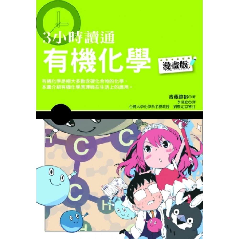 2010年諾貝爾化學獎,由美國和日本三名學者同得,表揚他們在有機合成領域的貢獻,製造出複雜的有機化合物,應用在發明新的藥物來治療疾病,生產科技產業、農業等所需的化學物質。 在成千上萬的化學分子中,稱為「有機化合物」的物質,在結構上具有碳原子與碳原子連結而成的骨幹。想要瞭解有機化合物,本書藉由漫畫與內文的互相搭配,完全不需要死背,讀者將輕鬆又愉快地了解有機化學。 本書介紹有機化學理論與生活實際運用,講解著名化學反應及其運用。輕鬆翻閱右邊頁面的漫畫篇幅,搭配左邊的文字說明,如此漫畫搭配文章解說,可以獲得超越課本的知識。只要知道有機化學的基礎,就能導出建立在基礎上的推論。有了這些知識,你也將能夠解決日常生活中大部分的有機化學問題。