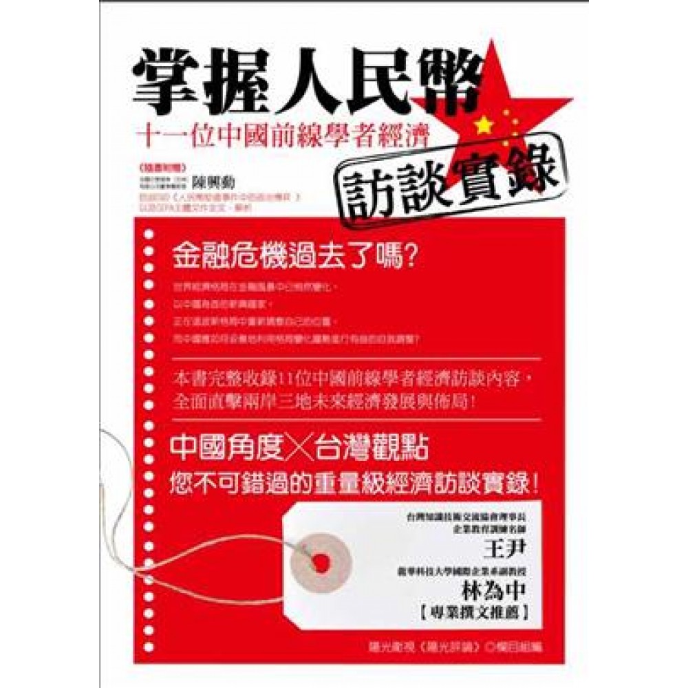 探討基礎經濟話題,引爆13億人民幣商機! 中國前線學者以專業角度剖析如何搶搭投資西進末班車! ●中國國際金融有限公司首席經濟學家 哈繼銘:中國的未來,面臨什麼挑戰? ●訪玫瑰石諮詢公司董事、前摩根士丹利董事總經理 謝國忠:中國面臨什麼經濟狀況? ●訪泰德集團董事長兼總裁 陳平:新生的契機,新格局,新文化,新思想,新經濟危機? ●訪中銀國際控股有限公司董事、首席經濟學家 曹遠征:七億美元救助下的全球經濟.. ●訪中歐商學院教授 許小年:凱因斯主義能不能救中國? ●訪亞洲開發銀行駐中國代表處高級經濟學家 莊健:貨幣政策與農村消費可否帶領中國? ●訪交通銀行首席經濟學家、《新金融》雜誌主編 連平:人民幣是否能借經濟危機成為區域貨幣? ●訪中泰信託投資公司總經濟師 陳樂波:經濟危機下的金融創新機遇? ●訪《財經》雜誌首席經濟學家 沈明高:救房市還是救經濟? ●訪法國巴黎證券(亞洲)有限公司董事總經理 陳興動:為什麼人民幣要保持穩定? ●訪北京大學哲學系教授 王博:金濟危機的哲學思考? 本書特色 金融危機過去了嗎?世界經濟格局在金融風暴中已悄然變化,以中國為首的新興國家,正在這波新格局中重新調整自己的位置,而中國應如何妥善地利用格局變化趨勢進行有益的自我調整? 本書完整收錄11位中國前線學者經濟訪談內容,全面直擊兩岸三地未來經濟發展與佈局! 中國角度╳台灣觀點 您不可錯過的重量級經濟訪談實錄! 台灣知識技術交流協會理事長、企業教育訓練名師 王尹 龍華科技大學國際企業系副教授 林為中