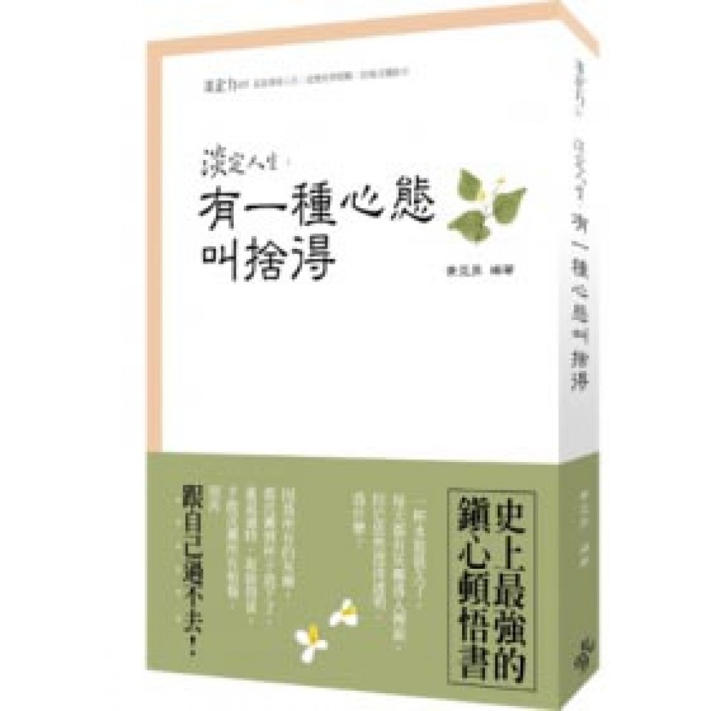 1. 史上最強的鎮心頓悟書:想要學會捨得的真諦,必讀這本心靈智慧書! 2. 導入「淡定力」新概念:引領你開悟成功的真相及人生的意義。雖然我們不是佛陀,但我們完全可以像佛陀一樣生活。 3. 妙趣橫生、含意深遠小故事:故事描寫具體而不抽象;沒有艱澀的辭彙和難懂的意境,加上作者淺顯易懂的詳盡解析,只要稍微用「心」領會,就能受用於日常生活中。 「得」是本事,「捨」是學問 人生就是一個捨與得的的過程 佛家認為:捨就是得,得就是捨。道家認為:捨就是無為,得就是有為。儒家認為:捨惡以得仁,捨欲而得聖。 現代人眼裡:捨就是放下,得就是成果。 透過「捨得」來豐富人生,在「捨得」中展現智慧,在「捨得」後感悟人生! 從自我、感情、待人、處事、觀念,全方位建立正確的捨得心態,學會取捨的智慧,懂得進退的真諦,就能夠開啟淡定人生。 捨不得,則.患得患失 .為利所擾 .為情所困 時時提醒自己: ◎不捨不得 ◎小捨小得 ◎大捨大得