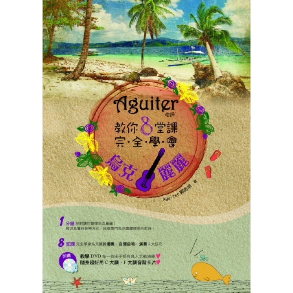 買了一把烏克麗麗,卻無法入門嗎? 您知道吉他譜不適合學烏克麗麗嗎? 上網學烏克麗麗,影片卻看不清楚嗎? 買了烏克麗麗書籍打算自學,卻發現裡面的光碟沒有親身示範? 這是第一本專門為烏克麗麗所設計的學習書~ 讓你從「生日快樂」到「淚光閃閃」, 從「李大仁之歌」到「Crazy G」, 從調音開始,一步一步帶著你學會烏克麗麗, 相信自己!你也能彈出「卡農」! 十數年任教於學校、社團、醫學中心、教會經驗的Aguiter郭志明老師, 嘔心瀝血錄製DVD影音,完全親身示範書中曲譜, 讓你對照書本、看著影片就可以學會烏克麗麗,立刻上手演奏! 保證只要書裡有的,影片也絕對仔細教你! 有了這本書,不再當烏克麗麗孤兒~ 「把老師帶回家!」 市面上最詳盡的烏克麗麗影音教學書! 1分鐘絕對讓你會彈烏克麗麗! 相信大家都喜歡音樂,也懷有自彈自唱的夢想,或許不用很高超的技術、很複雜的樂理,只想純粹享受自己能彈奏音樂的快樂。 小巧可愛的烏克麗麗是療傷系的樂器,無論是流行歌曲、教會詩歌與心靈治療,都具有非常好的效果! Aguiter老師藉由分享多年來教學的心得,從完全不會彈到知道怎麼彈的同學心態寫起,試著用親切的方式,讓同學們簡單而純粹得到演奏音樂所帶來的幸福與快樂! 準備好彈奏開心的烏克麗麗了嗎?同學們,一起來吧!!! \\^o^// 附贈【教學DVD】每一首曲子都有真人示範演練 隨身超好用C大調.F大調音階卡片