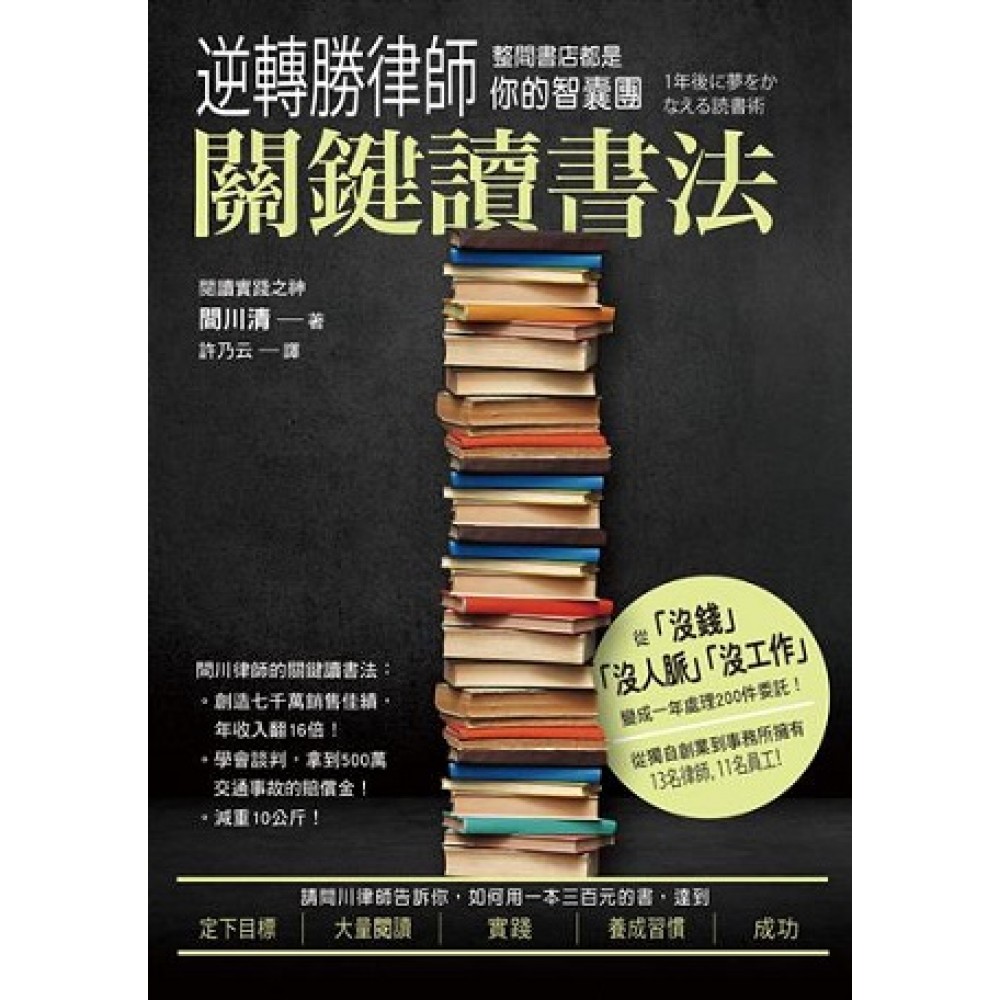 序章 零業績律師鹹魚大翻身 「存款只剩下幾個月的房租和生活費啊……」 四年前,我拿著銀行的存摺,坐在幾乎空無一物的辦公室裡思考這個惱人的問題。 我在七年前成為律師,於東京的律師事務所工作兩年,之後,我回到故鄉埼玉縣川越市,開了一間屬於自己的法律事務所。 「過去受雇於人,從現在起,我可以依照自己的意思工作了!」創業剛開始,我意氣風發、滿腔熱血,但殊不知殘酷的現實正等著我。 「律師就跟醫生一樣,是有錢的人生勝利組」,這是大家對律師的印象。以前的律師或許如此,但現在的律師業是很辛苦的。 由於日本司法改革,讓律師人數大增,造成很多人找不到工作。 法界沒有什麼工作機會,律師事務所也遇缺不補,有兩成求職者沒有律師登記,因而無法擁有自己的事務所。職場上出現一些僅靠一支手機接業務的「手機律師」,或是打工性質的兼職律師。 對律師而言,年收入三百萬日圓是很基本的,雖然如此,許多人卻為了準備律師考試長期抗戰,造成生活拮据,背負一千萬日圓的負債。 沒有委託人,律師就只是普通人。沒有收入,只靠律師執照根本無法過生活。 在這樣艱困的職場環境之下,我獨立開業。理所當然地,殘酷的事實正等著我。 當初之所以選在埼玉縣川越市開業,是因為離我老家所澤市很近,而且川越市也有埼玉縣西部轄區法院,事務所離法院近,工作自然比較方便。 開業初期,我在川越市完全沒有熟人,因此沒有工作,也沒有委託人上門。 律師這個工作,是解決一個人關乎人生的問題,委託人(客戶)多半會透過值得信任的朋友介紹律師,因此人脈非常重要。 在開業初期,我缺少的是重要的人脈關係。 當時,我為開業準備的三百萬日圓營運資金,已經用掉一百萬日圓,只剩下兩百萬日圓。 事務所需要房租,還要支付一名雇員的薪水,就算我自己不拿半毛薪水,在沒有工作上門的情況下,這份營運資金只夠我再撐幾個月。 ■當時,我媽還認真的告訴我:「不要想不開喔。」 在沒有人脈的情況下開業,我整天都待在事務所裡,接不到任何電話。 由於我上班沒事做,只能上上網,或是參加律師讀書會,沒做任何像樣的工作。以前在律師事務所上班,工作量多到每天都加班至凌晨12點。兩者相比,真是天差地遠。 開業初期,雖然處於閒閒沒事的狀態,我依舊抱持著天真的想法,「總有一天會變好的」,每天到事務所去,卻沒有什麼正式工作,這樣日復一日。 某天,唯一的員工下班以後,我獨自一人瞪著事務所的存摺,突然感到一股無法言喻的極大不安感。 沒有委託案子,但還是要支付房租跟員工薪水。 我看著存摺,看見開業資金的絕大部分都用於維持事務所的營運,資金只出不進。 我當下突然體認到一個事實:「再過幾個月,營運資金就會用完。」 從那天開始,我每天都在煩惱「如果接下來幾個月都沒委託案子上門,事務所就要倒閉了」、「該怎麼辦」、「為什麼都沒工作上門」。 我過於擔心律師事務所的狀況,終日過著愁眉苦臉的生活。 當初為了節省生活費而選擇住家裡,我的母親看到我的狀況很擔心,嚴肅地告訴我:「你還好嗎? 就算事務所營運不順利,也不要想不開喔。」 因為我總是帶著嚴肅的表情,面無笑容,使母親很擔心「我兒子會不會選擇自殺?」 因為母親,讓我驚覺,原來我已經把自己逼到絕境。 ■一本書救了我 把我從絕境拯救出來的,是一本「書」。 一本僅值三百元的書,拯救了陷入危機的事務所,更讓我的人生峰迴路轉。 我遇到了這樣的一本書,然後按部就班地實踐書中的內容,結果我的事務所收入蒸蒸日上,創造高業績。 講得明白一點,就是開始賺錢。 過去是看著存摺上微薄的數字嘆氣,現在存摺上出現的是驚人的數字。 我不想破壞律師的形象,所以在此就不多加描述,但其實我每天晚上都自己待在事務所裡,看著存摺上好多個0暗自竊喜。(笑) 當下的幸福感,真的是無法言喻啊。 真要說造成我改變的緣由,可以說是「我遇見了一本書」。 ■一本書可以改變人生 「一本書讓我獲得高收入」,因為這個經驗,讓我更加愛上讀書。 我習慣每天都去逛書店,找尋能實現自我目標的書籍。 若是遇見一本好書,我會試著實踐書中的內容,挑戰自我的改變極限。 因為如此,我的人生逐漸朝著理想的方向邁進,變得心想事成。 我從經驗中發現,「為什麼過去都沒有人告訴我,讀書就能夠成功?」「原來世上有如此簡單就能得到成果的方法!」「書本的力量真不是蓋的!」 現在我所經營的法律事務所,從開業當時的1名律師(我)及1名職員,到現在規模已經成長至13名律師、11名職員。 如今事務所的營業額突破數億日圓,負責許多案件,事務所經營得風生水起。 我已經不用再擔心手邊的錢「還夠付幾個月的租金」。 能夠走到今天,除了事務所的員工及委託人的照顧與支持,幫助我最多的,還是「遇見一本好書」。 因為書,讓我交出理想成果,因此我想讓更多人知道「一本書真的能讓人成功! 能夠改變人生!書的力量真的很偉大!」 於是我有了一個想法:我要出版一本書,書名叫「利用書籍獲得成功」! 隨著本書的出版,這個想法終於得以實現。 ■本書的內容 書中濃縮各種撇步,教你「如何利用一本書獲得成功」的關鍵讀書法。 第一章 如何以一本三百元的書,創造七千萬銷售佳績 我將在本章敘述我自己如何運用書來改變人生,獲得成功。不是我愛現,而是我想讓各位實際體