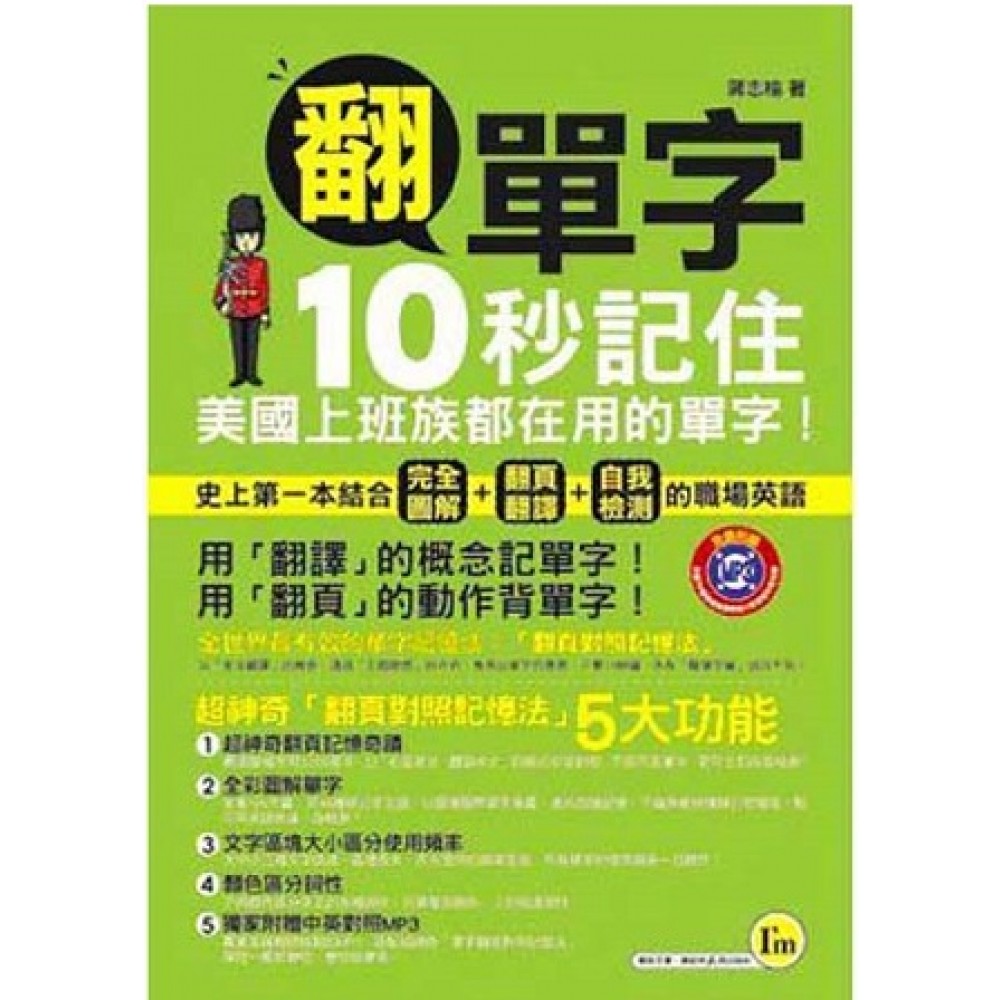 「我對專業領域的英文法律術語十分熟悉,但最熟悉的英文也只有這些,只要有外國客戶想和我閒聊,我連開口聊些生活瑣事都有困難。這樣一來,難免損失許多與重要客戶拉近距離的機會。」-- 新北市法律事務所律師 辰琳 「我平常最怕接到國外客戶的電話,明明事前做好充分的準備,但一接到仍然緊張得不知所措,只好趕快把電話轉給英文好的同事。但總不能每次都這樣,因為英文不好,無形中也少掉很多升遷的機會。」-- 外商公司英文業務 Jessica 「我對自己航太工程專業程度非常有信心,但是最近公司要求所有同仁必須具備新多益執照,真的讓我很頭大。我的專業英文術語一點問題都沒有,但新多益常考的職場字彙我根本就不熟。工作已經很忙碌,實在很難抽出時間額外加強英文。」-- 航太工程師 哲森 「我平常要寫很多e-mail和國外的客戶聯繫,但每次寫信都要花掉很多時間,很多用語和格式也不知道到底對不對。主管對於品質和效率的要求又很高,實在讓我壓力很大。」-- 貿易公司總經理特助 詹姆斯 「我在外商公司上班,主管是一位英國人。公司常有國外客戶來訪,因此我常常要接待外賓,並在開會時準備英文簡報。雖然我自認英文能力還不錯,主管卻常暗示我的英文用語不夠專業,讓我對自己的英文能力更加沒信心。」-- 英商公司總經理祕書 趙小姐 以上都是我常常聽到有關上班族對自己英文能力不足的煩惱。許多在各種領域都非常專業的菁英人士,例如:工程師、律師、會計師、機師、甚至是公司高階主管等,都不約而同有著同樣的瓶頸和困擾——英文! 這些在不同領域學有專精的上班族常常問我,到底要如何才能有效率地豐富自己的英文單字庫以及字彙的運用能力。這些精英人士在自己熟悉的領域呼風喚雨,但一碰到要與客戶面對面溝通、聯絡感情的場合時,卻支支吾吾,無法將自己所學運用在職場應對。 隨著台灣企業愈來愈國際化,許多公司徵人時規定應徵者須具備新多益證照,以作為錄取考量;尚未具備英文證照的在職員工也常被公司要求進修英文,愈來愈多企業將新多益證照作為升職加薪的考績標準。由此可見,不論對自己工作領域的英文專業術語多麼精通,若無法具備基礎商業英文能力,對於想獲得公司重用的上班族來說,絕對會成為日後加薪升遷的絆腳石。 有鑑於此,在與我識出版社的編輯討論過後,我決定特別針對台灣上班族最常面對的難題,規劃一本真正適用的字彙書,讓忙碌的上班族能在有限的時間內,以最有效的方式增進他們真正需要用的英文實力。《翻單字:10秒記住美國上班族都在用的單字》以最有效率的「翻頁對照記憶法」不只幫助讀者迅速背完單字,更能瞬間檢測自己的英文實力。「翻頁對照記憶法」以右頁全英文,翻頁為中文對照的方式,搭配全彩插圖,方便讀者能由圖像聯想單字意義,加深對單字的印象。本書的單字區塊依照使用頻率分為大、中、小三種區塊,區塊愈大,表示使用頻率愈高。 《翻單字:10秒記住美國上班族都在用的單字》特別收錄辦公室最常使用的將近4000單字,針對不同領域詳盡分類規劃。本書的另一項創舉則是將單字的不同詞性以不同顏色標明,讓忙碌的上班族在背單字的同時,能夠一眼就分辨出每個單字的詞性,貼心的設計就是要讓上班族再也找不到不背單字的藉口。不管工作再忙碌,都能隨翻隨背。 在此預祝所有即將踏入職場的社會新鮮人,以及在職場打拼多年的白領族,無論大環境景氣與否,面對職場的挑戰都可以無往不利! 蔣志榆 2011年9月