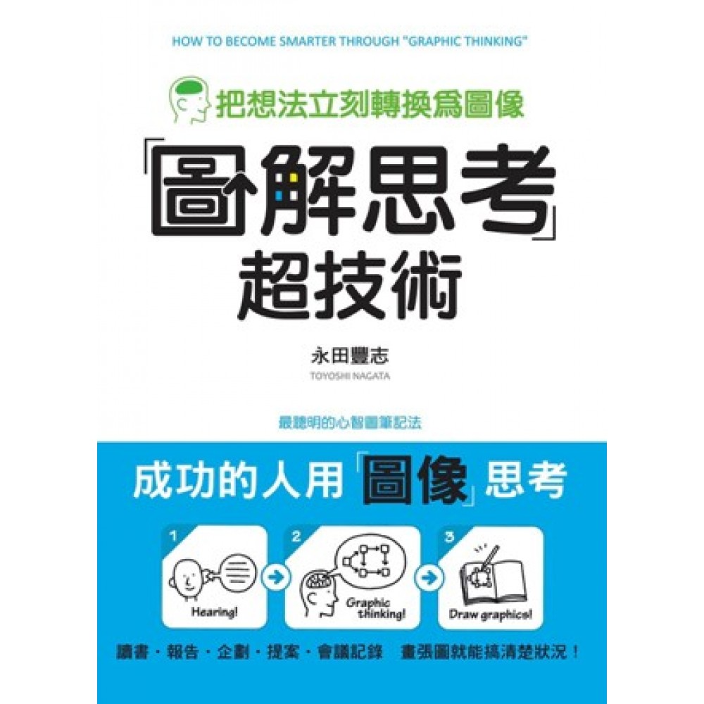 聰明X 創意的心智圖筆記法 讀書.報告.企劃.提案.會議記錄……一大堆的文字內容,你是不是常感覺記到爆累又毫無建設性? 學會超強圖解技術,從今以後,只要畫張圖就能搞清楚全部狀況! 撰寫本書的主要目的是要幫您整理腦海中的想法以便從事「圖像思考」,指導如何整理、分析接收到的情報資料以清楚傳達他人之技術。 希望讀者們透過本書學習的是「情報資料輸入後,立即經由圖解之整理、記錄並輸出」等作法非常簡單的技術。 作者將這項技術稱之為「圖解翻譯」。傾聽、理解、傳達情報資料時,經常會使用到的所謂「圖像思考」技術。 圖解翻譯是一項非常簡單卻又好用無比的技術,因此,閱讀本書後,親自嘗試看看,任何人都能馬上學會這項技術。 本書特色 1.圖解思考法,不僅能夠提高記憶,還能刺激創意!是學生、上班族提升能力的利器! 2.本書透過可愛的插畫,教你運用數款的基本類型組合,馬上可以整理出非常多的資訊唷!