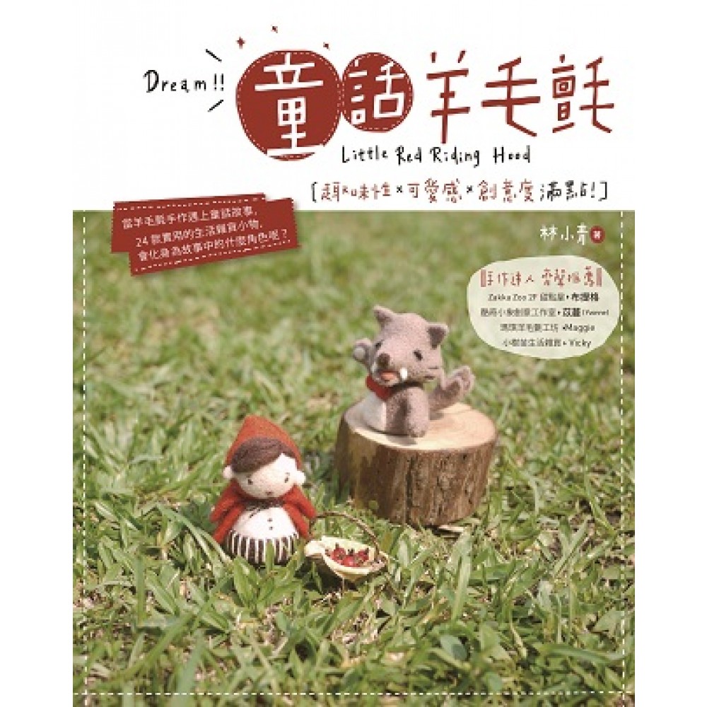 [習作篇] Part1. 羊毛氈介紹 ★ 主角出場:羊毛 ★ 什麼是羊毛氈 ★ 什麼是羊毛片 Part2. 工具介紹 ★ 戳針、多針工具、工作墊、保麗龍膠、剪刀、錐子、熱熔膠、熨斗 {小教學} 自製簡易多針工具 Part3. 針氈基本技法 ★ 羊毛片的使用 ★ 版型變變變 {小教學}自製模型隨意玩 ★ 立體物件的塑型 .片狀:三角形、半圓形 .圓球與圓柱體 .椎形:截頂圓錐(圓台)、水滴、三角錐 Part4 聰明大秘訣 .下針的輕重 .毛量的拿捏 .圖案的勾勒 [故事篇] 當童話故事遇上羊毛氈……不一樣的《小紅帽》! 作品示範 ★ 小紅帽家的純白水玉窗簾 ★ 小紅帽客廳中的十字星星 ★ 小紅帽家的地板 ★ 溫暖家裡的小紅帽 ★ 森林裡的小紅帽 ★ 森林中的草地 ★ 森林裡的小樹 ★ 遠處的姑媽與伯伯家 ★ 路邊盛開的小花 ★ 森林裡的大野狼 ★ 元氣向日葵 ★ 在樹洞休息的貓頭鷹 ★ 在樹梢唱歌的小鳥 ★ 草叢裡毛茸茸的小兔子 ★ 外婆花圃中的繡球花 ★ 外婆家前院的刺蝟兄弟 ★ 外婆院子中的小樹 ★ 外婆家門口的小花圈 ★ 外婆客廳牆上掛著的兩幅畫 ★ 外婆家的的格子地板 ★ 慈祥和藹的外婆 ★ 小紅帽親手做的愛心白巧克力 ★ 小紅帽的手工餅乾 ★ 小紅帽自製的櫻桃杯子蛋糕
