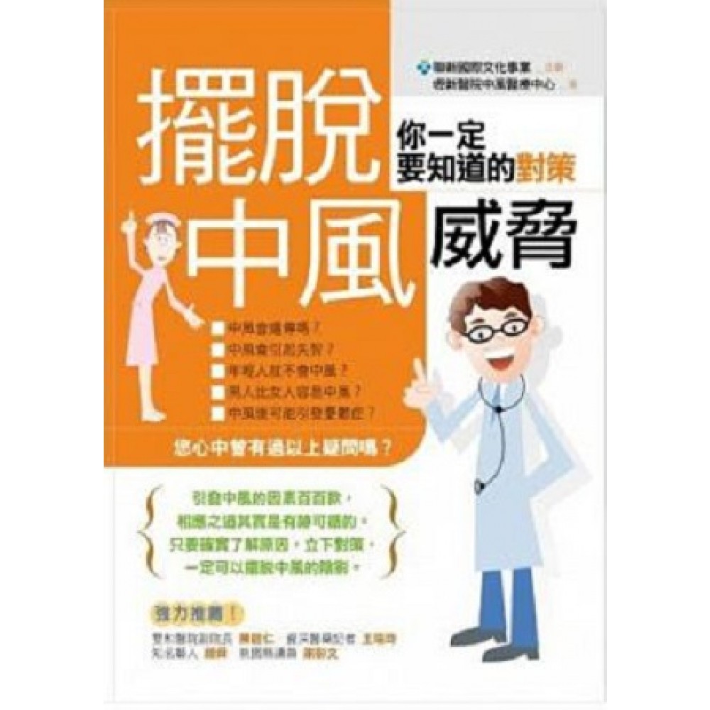 Part 1中風發作了,怎麼辦? 觀念篇破解腦中風的前因密碼 認識傷害腦部血管的腦中風 Q1什麼是腦中風?會對身體造成很嚴重的影響嗎? Q2腦中風可分為幾種?成因為何? Q3腦中風的症狀有哪些? 你有中風體質嗎?先天不可抗拒的危險因子! Q1年紀大的人比較容易中風嗎? Q2男人比女人容易中風嗎? Q3父母親或直系親屬曾有中風病史的話,我就一定會被遺傳嗎? Q4季節交替時,中風機率會比較高嗎? Q5曾經罹患過腦中風,已經痊癒,還有可能會再復發嗎? 慢性疾病是通往中風的危險之途 Q1高血壓為何是腦中風的頭號大敵? Q2高血脂會造成腦中風嗎? Q3心臟不好也會導致腦中風嗎? Q4糖尿病不是只跟血糖有關係嗎?為何會演變成腦中風? Q5頸動脈狹窄跟中風有關嗎? Q6為什麼癌症病患有中風的危險? Q7為什麼少數產婦會在分娩後發生中風狀況? 你的生活中潛藏中風的隱形殺手嗎? Q1肥胖的人較易中風嗎? Q2 老煙槍和中風的關聯? Q3酗酒為何會造成中風? Q4不愛運動跟中風有何關聯? Q5什麼樣的飲食容易誘發中風? Q6服用什麼藥物可能引起腦中風? Q7曾聽聞媒體報導按摩後中風的病例,所以我們應該留意,哪些部位不宜讓人按摩? Q8聽說性交時過度亢奮,會導致中風? 你是中風高危險群嗎? 【自我檢測】佛來明漢風險指數 案例篇急性中風搶救一瞬間 【案例1】張先生的就診資料 把握黃金3小時,中風命運大不同 延誤送醫遺憾多,錯失黃金救命時刻 【案例2】王先生的就診資料 確認中風的指標──辛辛那堤指標「FAST」測試 Part 2急診之後 觀念篇中西醫治療方式大公開 中風患者的檢查及治療方式有哪些? Q1急性中風病患到達醫院後,初期會做哪些檢查? Q2醫師如何評估患者中風的嚴重度? Q3腦中風急性期的治療方式為何? Q4中風急性期的藥物療法有哪些? Q5請問醫師會在那些考量下,為腦中風患者進行外科手術? 中風治療過程中,應該注意的用藥安全? Q1中風的常用藥物有副作用嗎? Q2缺血性腦中風患者服用Aspirin(阿斯匹靈)應該注意哪些事項? Q3在中風治療期間,服用藥物要注意哪些事項? Q4在中風的治療過程中,還須治療哪些事項? 住院時,中風患者的復健原則 Q1 送到加護病房的腦中風患者,可以做復健嗎? Q2急性住院期間的中風患者能夠做哪些復健治療? Q3慢性住院期的中風病患會做哪些復健治療? Q4中風患者住院後,如何評估其康復程度? 中醫可以治療中風嗎? Q1中醫對中風的觀點為何? Q2針灸對於中風的療效成果如何? Q3中醫針灸在中風急性期介入治療安全嗎? Q4民間流傳以指尖放血來做為中風的急救方法可行嗎? 中西醫如何合併治療中風? Q1中風病患何時可接受中醫治療? Q2中醫介入西醫治療中風患者的標準流程? 中醫治療中風的方式有哪些? Q1網路上或口碑相傳的中風秘方可用嗎? Q2中醫可用於改善中風症狀的藥膳有哪些? Q3中醫的針灸療法是如何施行? Q4在中風急性期,中醫的治療有哪些特色? Q5在中風恢復期的肢體運動訓練中,中醫針灸的輔助治療計畫為何? Q6肩關節疼痛,是不是就代表脫臼?可以用中醫輔助治療嗎? Q7中風患者家屬可以為患者進行簡易的穴道按摩嗎? 案例篇中風痊癒後更要預防二度中風 【案例○1】中西醫合併治療,重拾彩色人生 Part 3出院返家之後 觀念篇返家後的長期抗戰之路 腦中風後的身體照護 Q1腦中風的後遺症有哪些? Q2針對不同程度的腦中風病患,家屬該如何協助護理? Q3中風患者最適合復健的時機為何? Q4對於中風病患做關節運動的目的為何?需要注意什麼事項? Q5 對於中風的初期階段患者,應如何進行復健? Q6中風後的復健方式須依照身體狀況的不同而有差異嗎? Q7拉筋運動對患者的主要幫助為何?需要注意的事項為何? Q8為什麼有的人中風後還可以走路,有的人連腳都抬不起來? Q9對於中風的初期階段患者,應如何進行復健? 腦中風患者家屬的心理準備 Q1 如何調適病患及家屬的心理狀態,避免受到重創? Q2如何在精神層面照顧中風患者? Q3為什麼中風的人容易生氣、哭泣,是否得了憂鬱症? Q4 中風後的憂鬱症該如何治療? 案例篇 「鐵三角全方位治療」讓患者笑顏逐開,動起來! 對中風患者動作訓練重點 復健治療三大重點:物理治療、職能治療和語言治療 案例篇照顧患者是我一個人的責任嗎? Part4 中風患者的預後 觀念篇不讓健康殺手「中風」找上你 控制慢性疾病是首要之務 Q1我們應如何控制血壓、降低中風罹患率? Q2糖尿病的控制重點為何? Q3心律不整通常是突發性的狀態,平日該如何控制? Q4高血脂症的治療,主要是依賴藥物控制嗎? 改善不良生活習慣,以預防腦中風 Q1肥胖的隱憂是什麼?怎樣才算肥胖? Q2如何消除肥胖? Q3如何戒除抽菸的壞習慣? Q4睡眠品質不佳也會造成生理的壓力嗎? Q5如何消除心理壓力? 利用運動擊退中風的危險因子 Q1運動跟預防中風有何關係? Q2對一般人來說,運動量需要多少才足夠? Q3沒有運動習慣的人,在運動時要注意什麼? Q4哪類運動可以降低中風的風險? BOX標:運動消耗你多少熱量? Q5怎樣運動才能確實達到運動效果?如何避免運動傷害? Part 5 預防腦中風,從得舒飲食做起 慢性高血壓與得舒飲食 Q1慢性高血壓患者為什麼必須控制血壓? Q2慢性高血壓患者除了服藥之外,還有哪些控制血壓的方式? Q3高血壓患者必須降低鈉的攝取量,所以得舒飲食也是嚴格限制鈉攝取量的飲食? Q4得舒飲食的原則為何? 得舒飲食的具體進行方式 Q1得舒飲食與一般飲食計畫的差