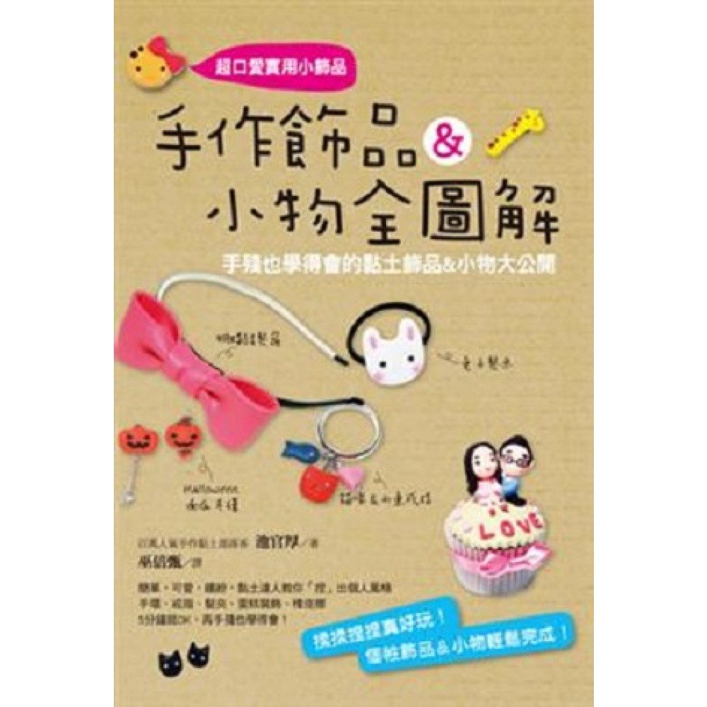 手作飾品&小物全圖解:手殘也學得會的黏土飾品&小物大公開-目錄導覽說明 Part1 軟陶土飾品 可愛的想要咬一口! 小雞耳環 散發致命女性美! 玫瑰耳環 簡單的黑色也很有魅力~ 惡魔水鑽耳環 像智允小姐一樣變成天使! 天使翅膀耳環 可愛又精巧的動物們報到囉! 動物耳環 最簡單、最好搭配的~ 混色珠子耳環 享受吧,萬聖節! 南瓜耳環 一眼就看到大大蝴蝶結的~ 巧克力女孩耳環 手腕不再空虛囉! 青蛙繩手環 掛上所有我喜歡的東西! Bling Bling手鍊 部落格的官方吉祥物~ 狗碗先生手環 綠色珠子與草莓的清爽調和! 草莓菠蘿手環 又一個可愛的角色手環! 巧克力女孩手環 搖搖晃晃的魅力! 貓咪&小魚戒指 能牢牢夾住頭髮的~ 鱷魚髮夾 渡假人氣配件! 梔子花髮夾 就像是害羞少女的~ 長頸鹿髮夾 將可愛動物做成髮束! 兔子髮圈 漂亮寶貝的必需小飾品! 蝴蝶結髮箍 用胸針來表現耶誕氣氛! 雪人胸針 將自己的角色做成胸針~ 人物角色胸針 像盛開般的~ 玫瑰條組合 Part2 彩色黏土小物 蛋糕上的可愛心意! 蛋糕角色裝飾 不要吃掉喔~用眼睛享受吧! 紀念日蛋糕 最高人氣的禮物! 角色杯子蛋糕 這是誰的房間呢? 房間名牌 和音樂一起快樂旋轉的~ 新郎新娘音樂盒 永不凋謝的~ 康乃馨 像動物園一般的~ 12生肖時鐘 Part3 調色盤黏土橡皮擦 有著各種表情的~ 草莓菠蘿橡皮擦 閃閃發亮的是? 小白虎橡皮擦 和別人不一樣的Pepero節! Pepero橡皮擦 請把我變成字臉吧~ 方臉少女橡皮擦 讓豐收的中秋節更豐盛吧! 松糕橡皮擦 借你吧借你吧! 西瓜橡皮擦 完全就是巧克力的感覺~ 巧克力橡皮擦